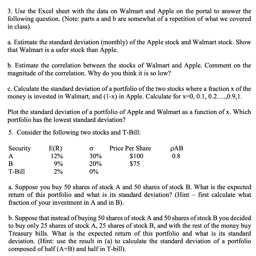 3. Use the Excel sheet with the data on Walmart and Apple on the po...