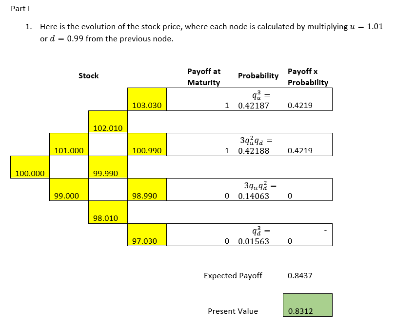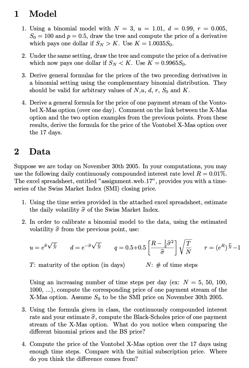 1 Model 1. Using a binomial model with N = 3, a = 1.01, d = 0.99, ...