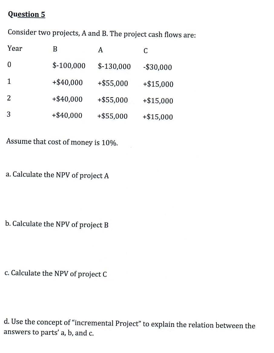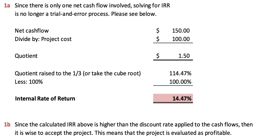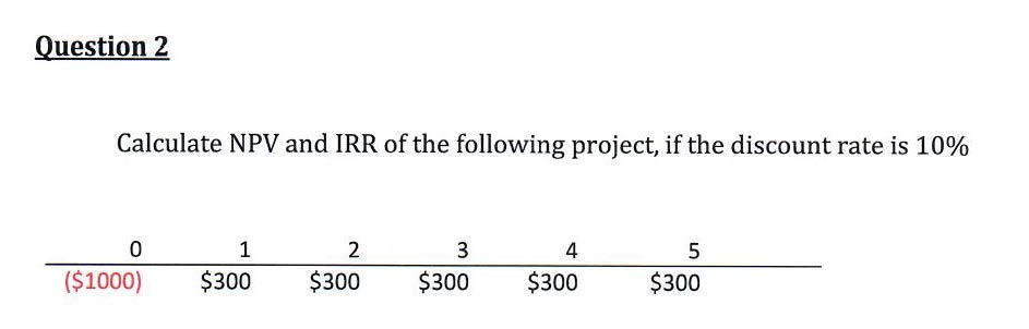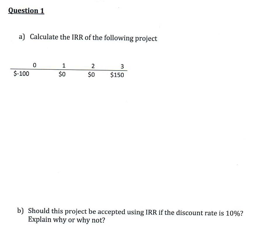 Question 1 a) Calculate the IRR of the following project 1 2 3 ...