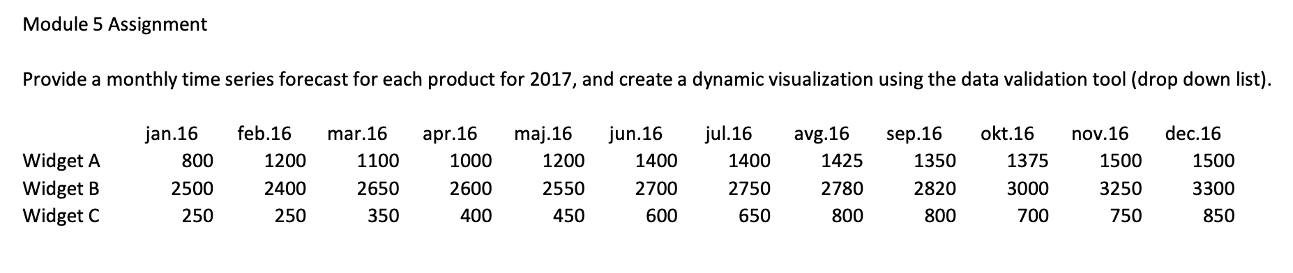 Module 5 Assignment Provide a monthly time series forecast for eac...