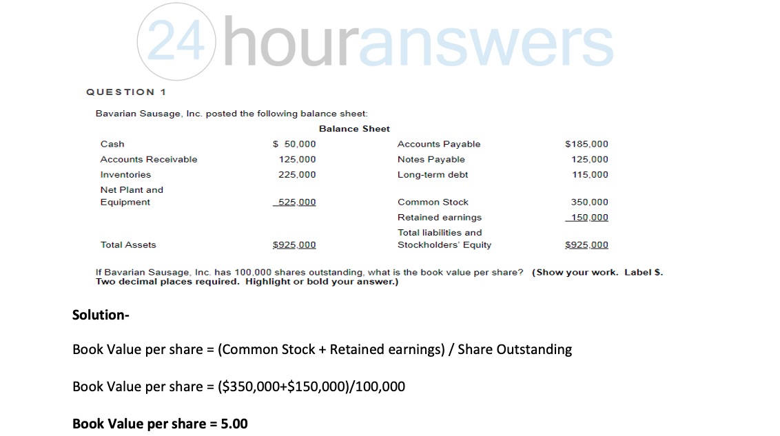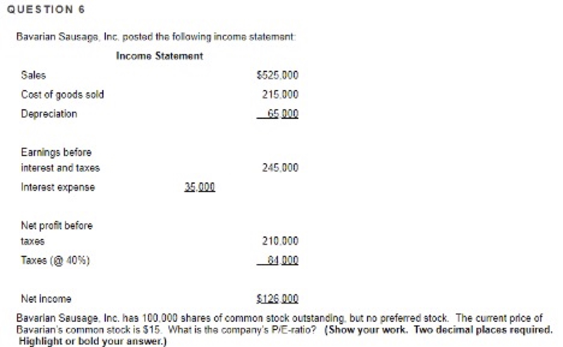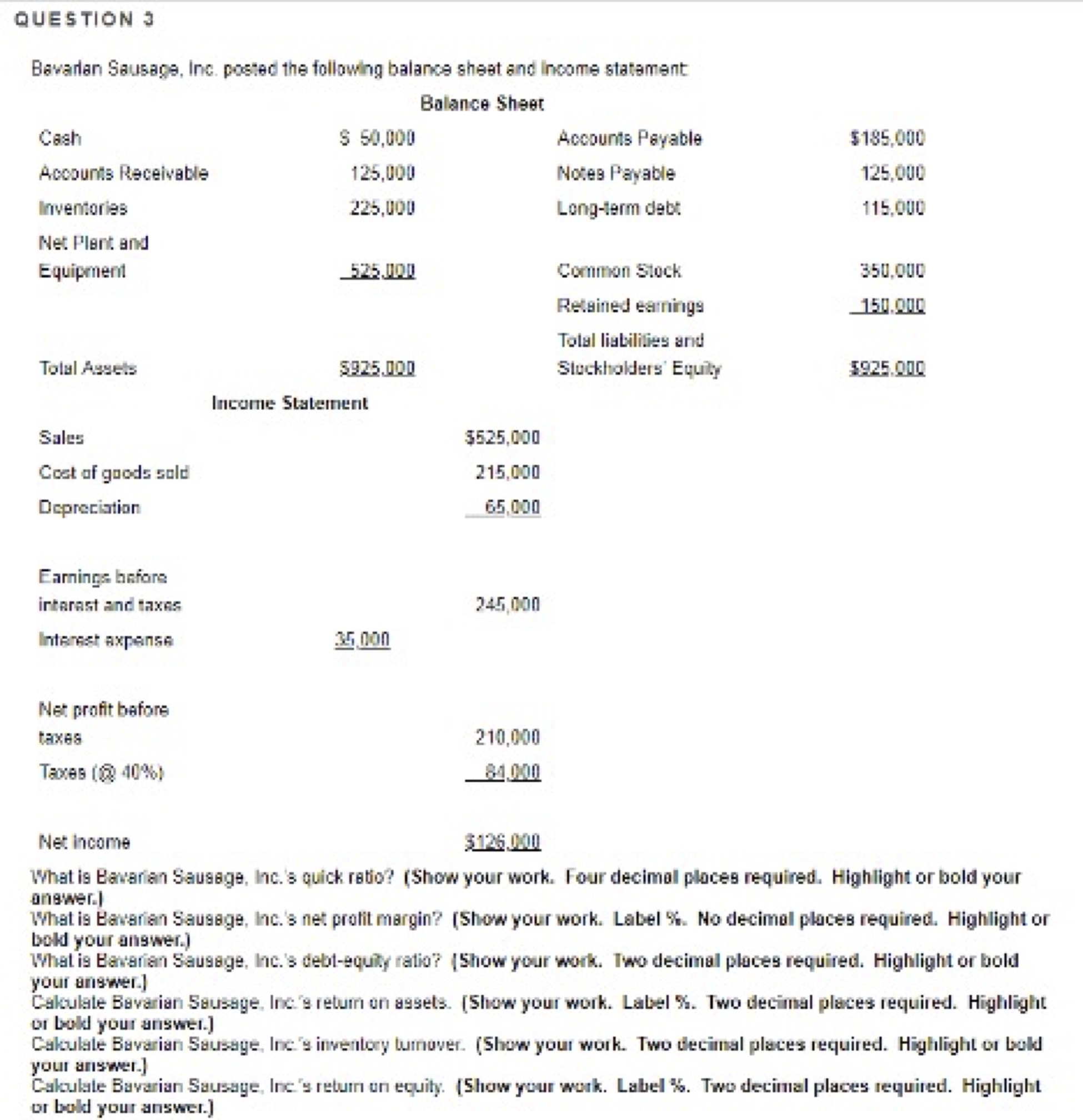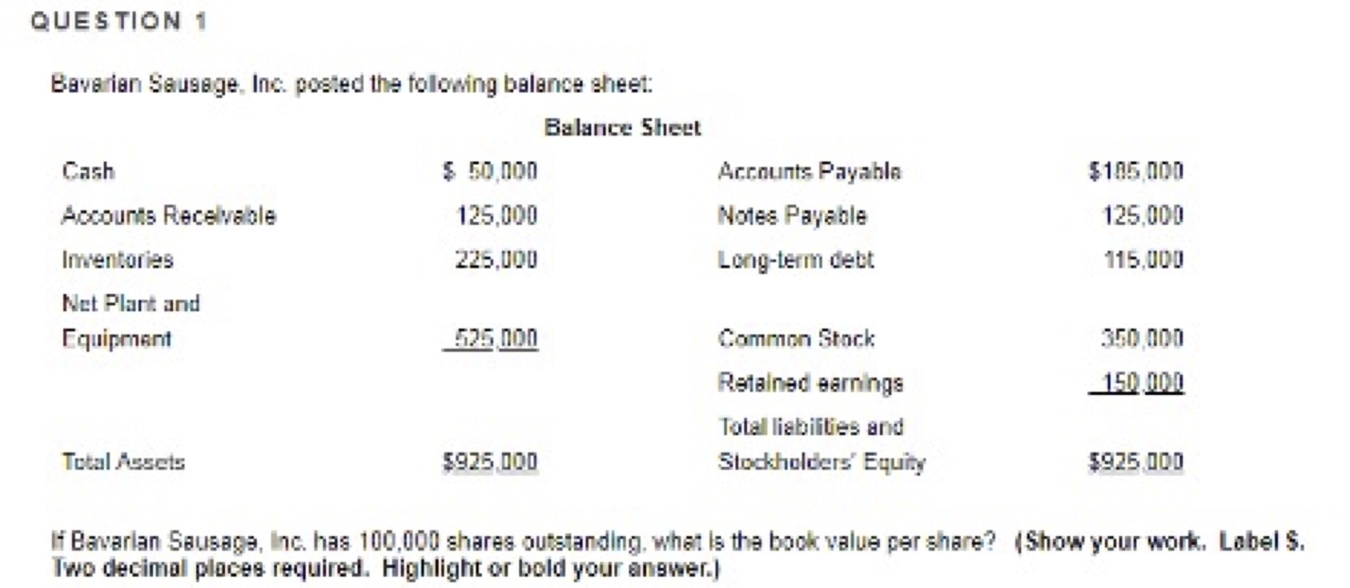 QUESTION 1 Bavarian Sausage Inc. posted the following balance shee...