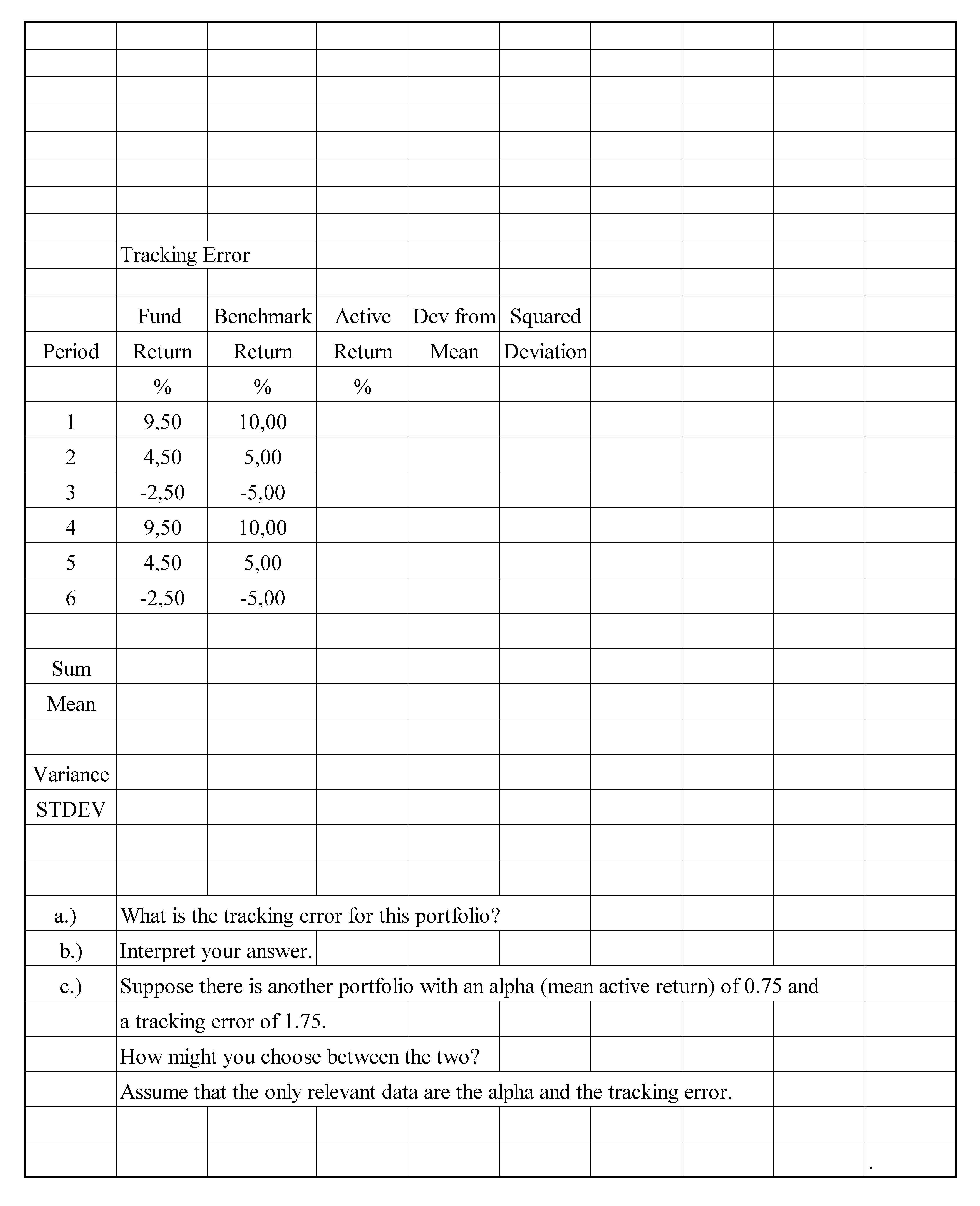 Tracking Error Fund Benchmark Active Dev from Squared Period ...