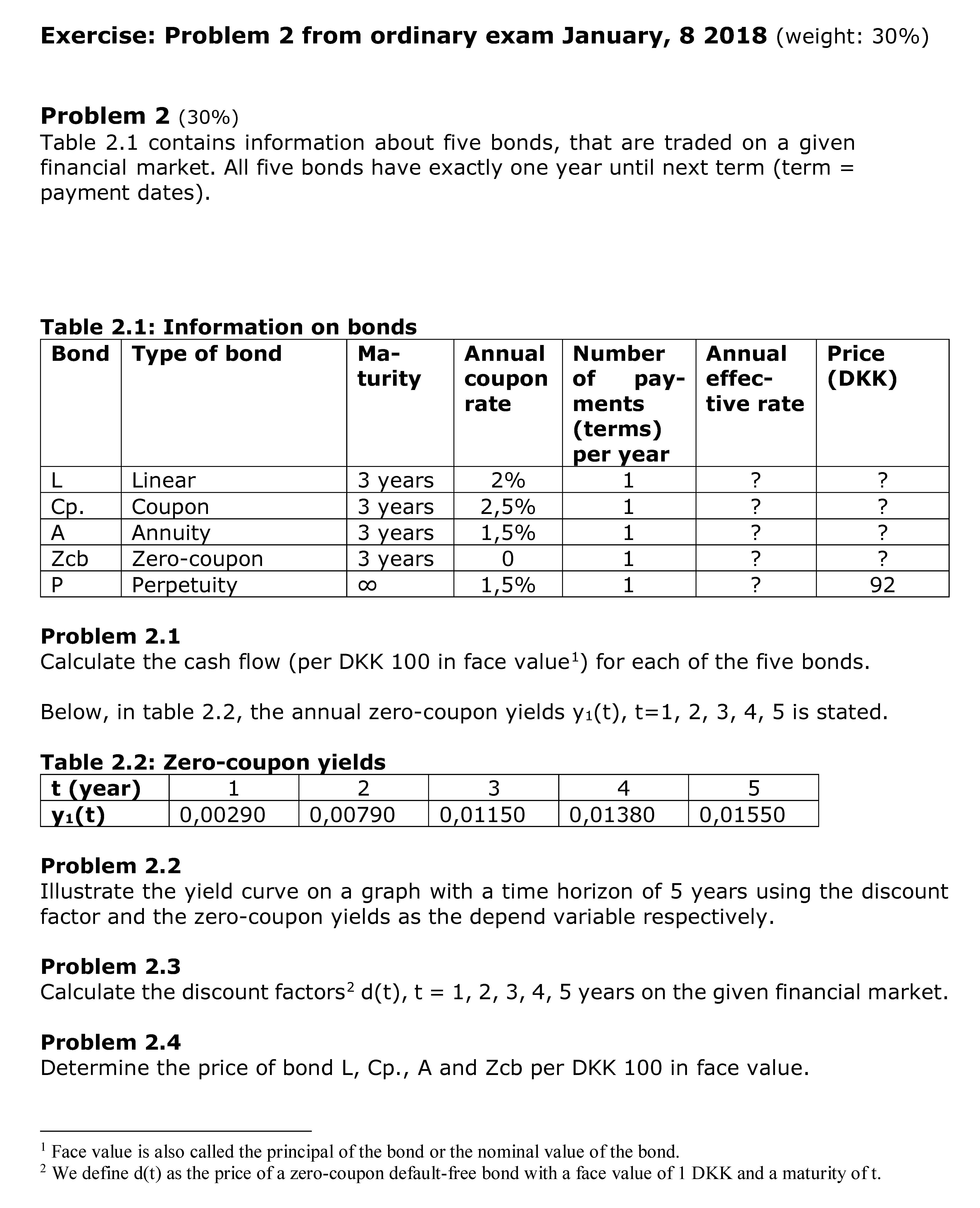 Exercise: Problem 2 from ordinary exam January, 8 2018 (weight: 30%...