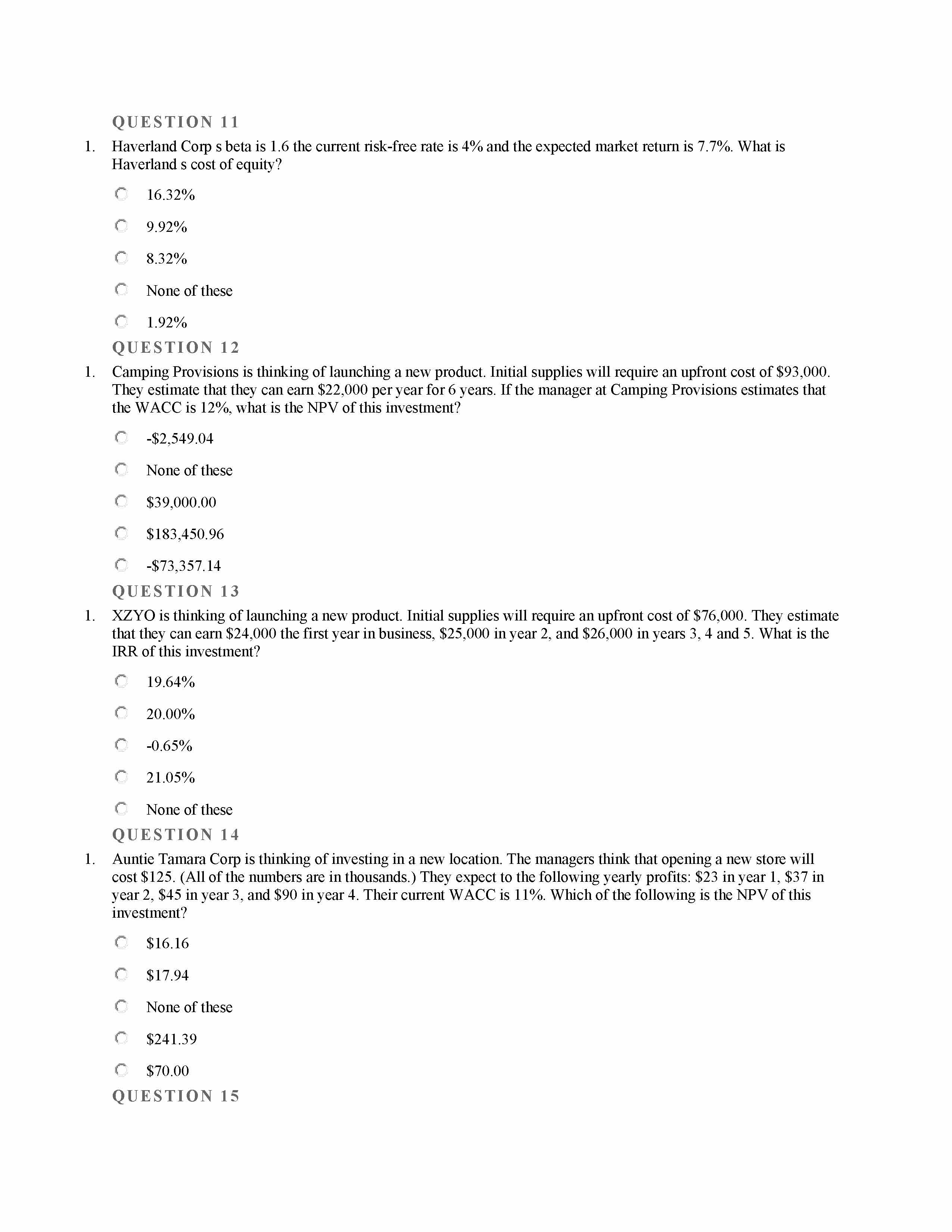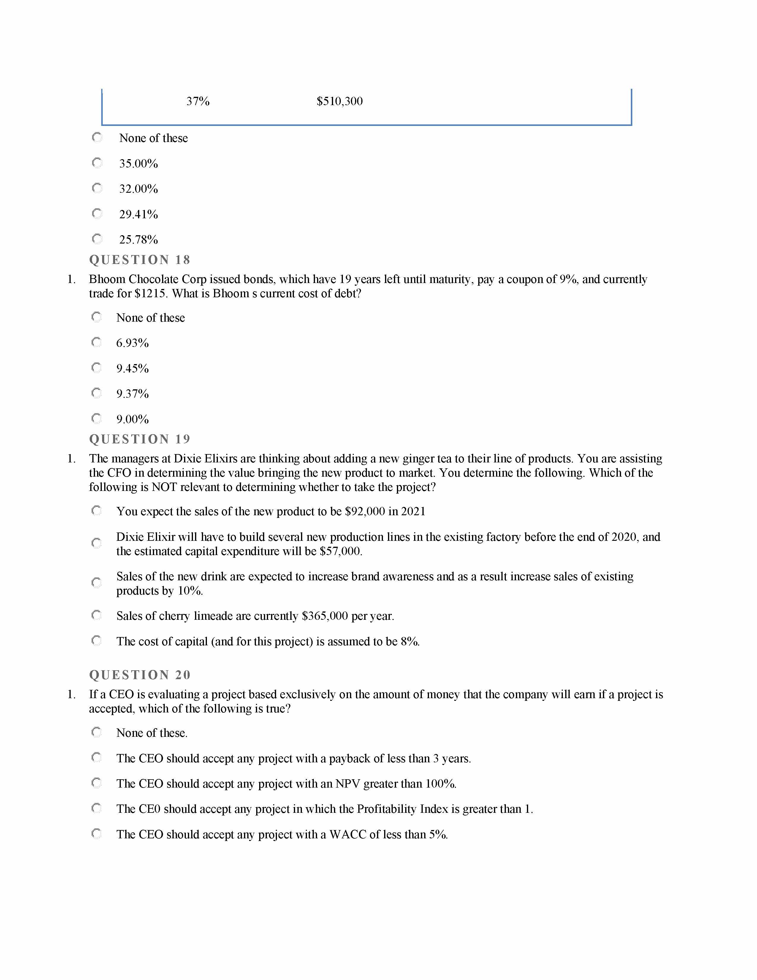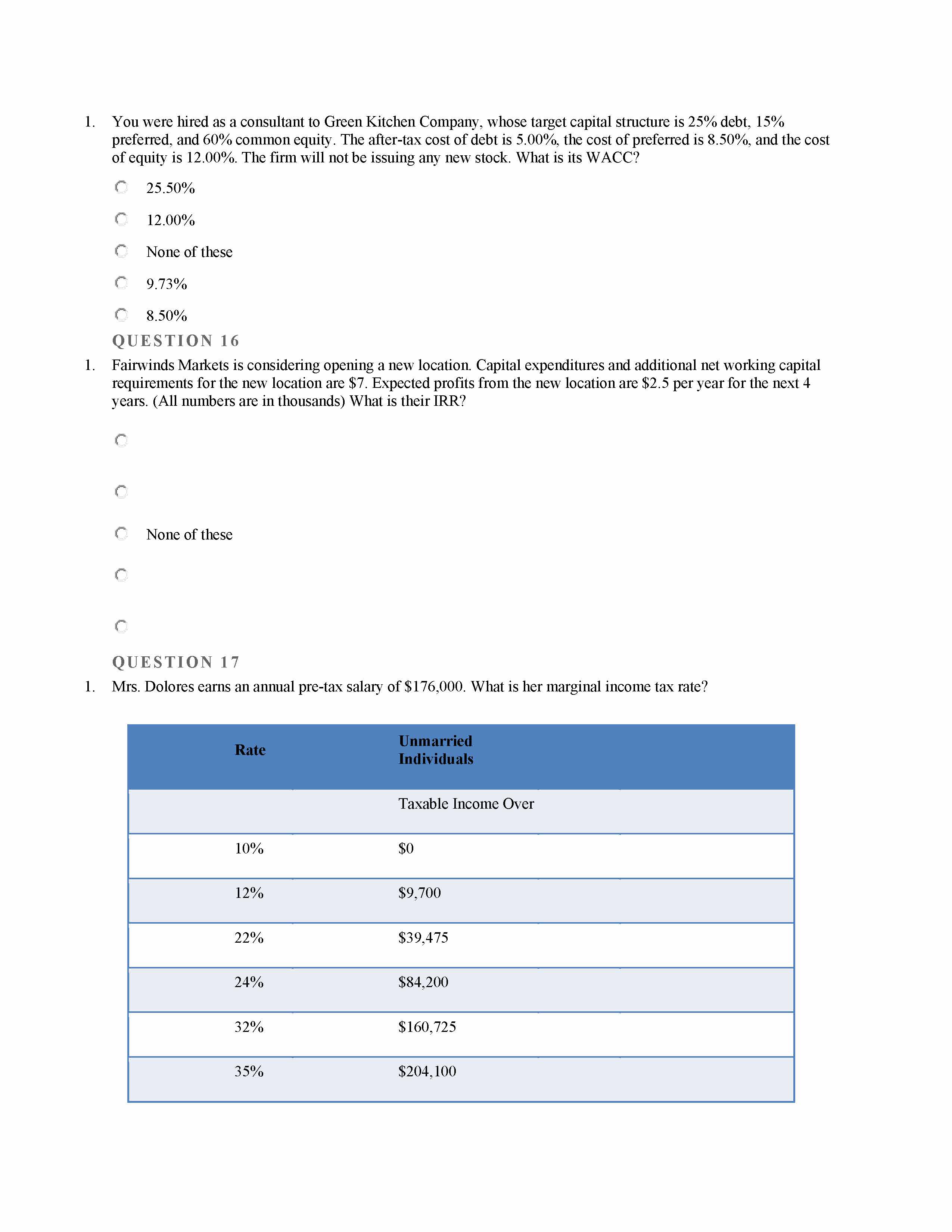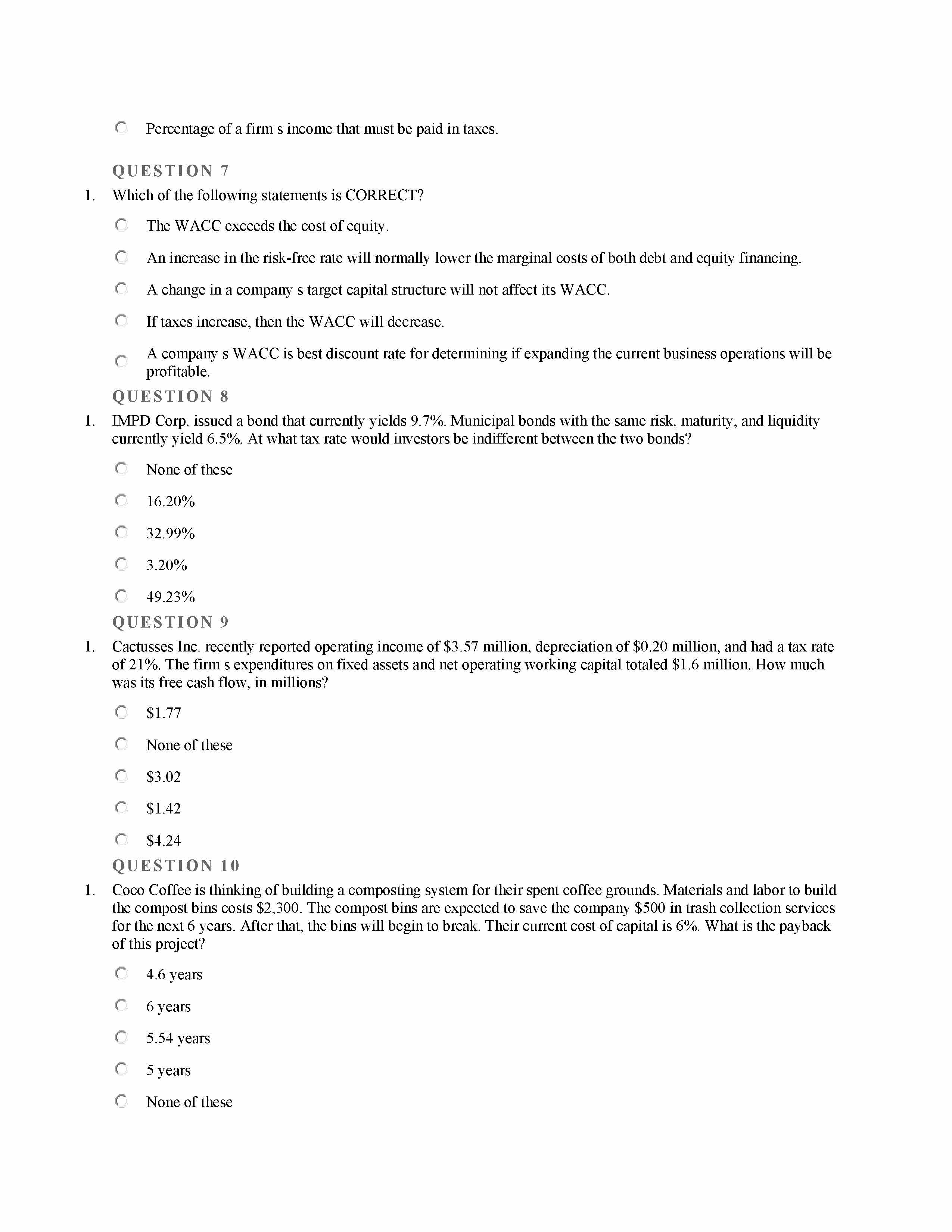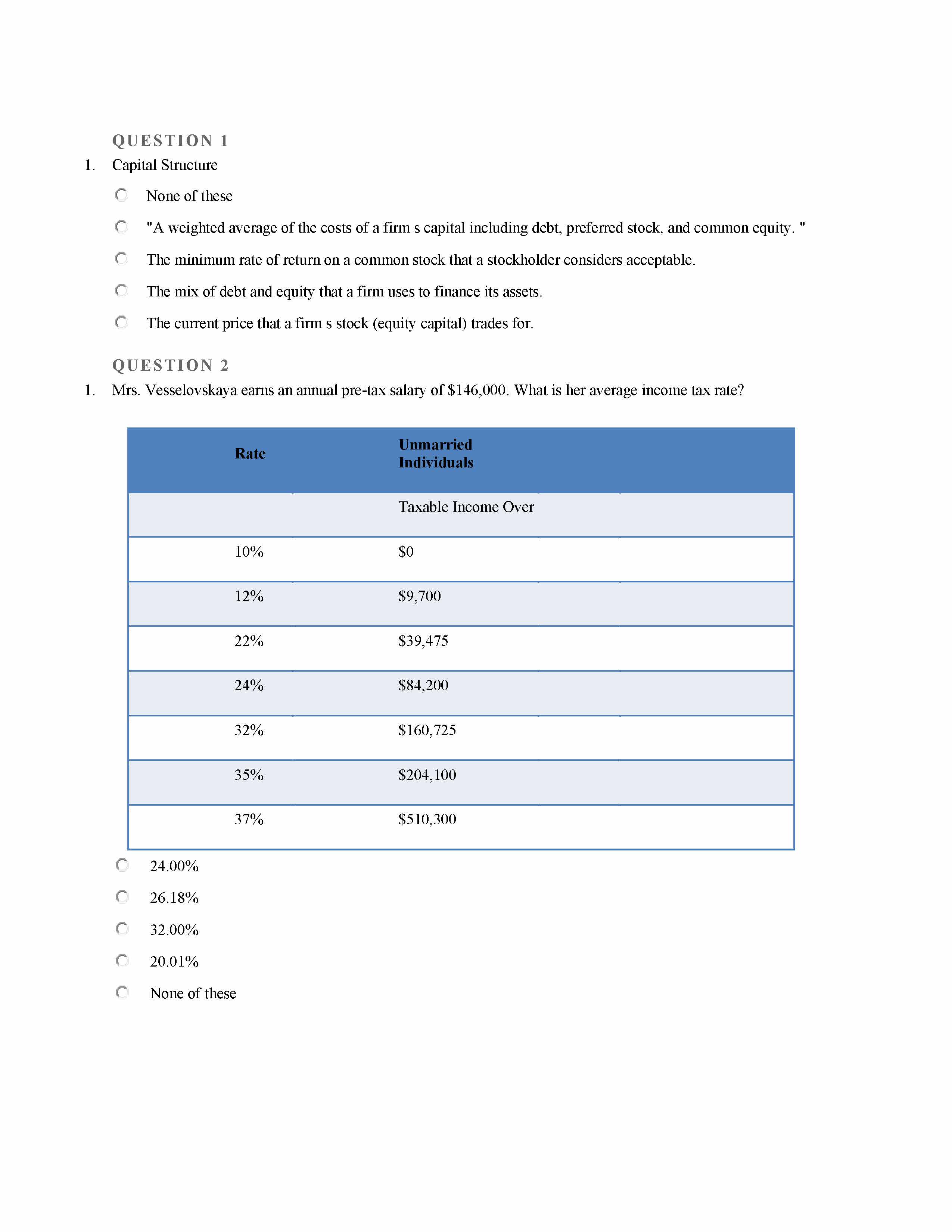 QUE STION 1 1. Capital Structure None of these "A weighted ...