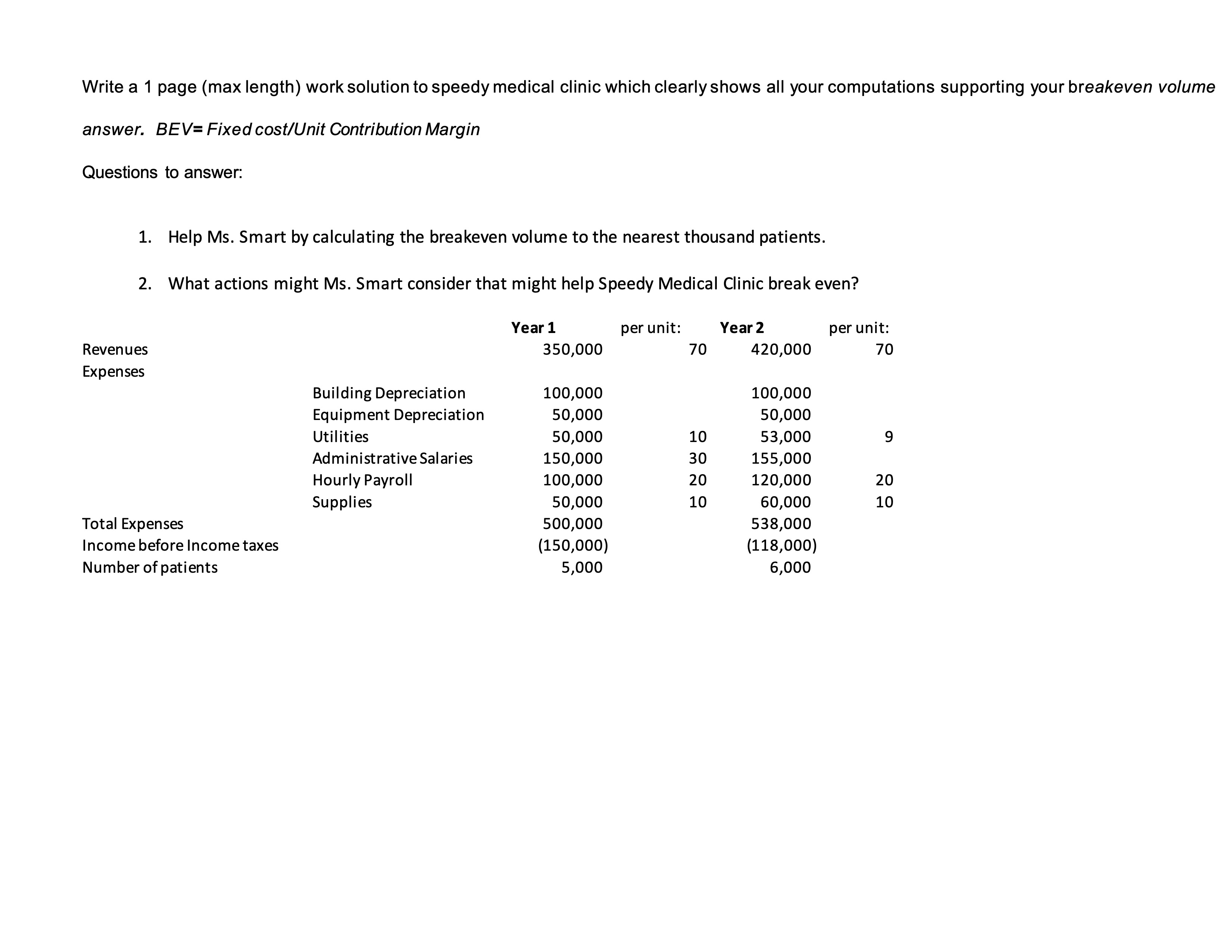 Write a 1 page (max length) work solution to speedy medical clinic ...