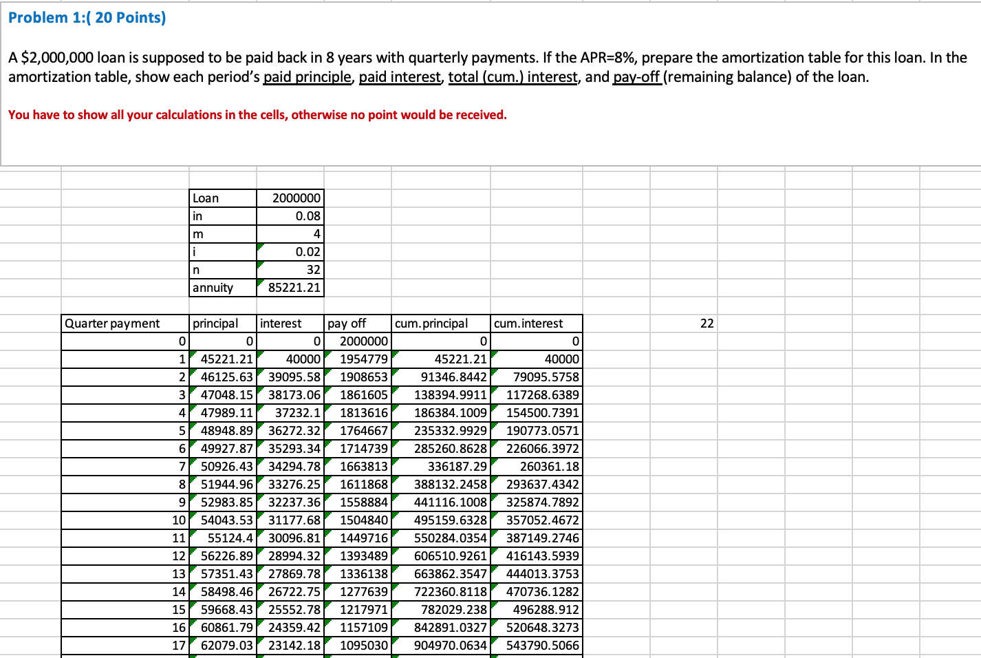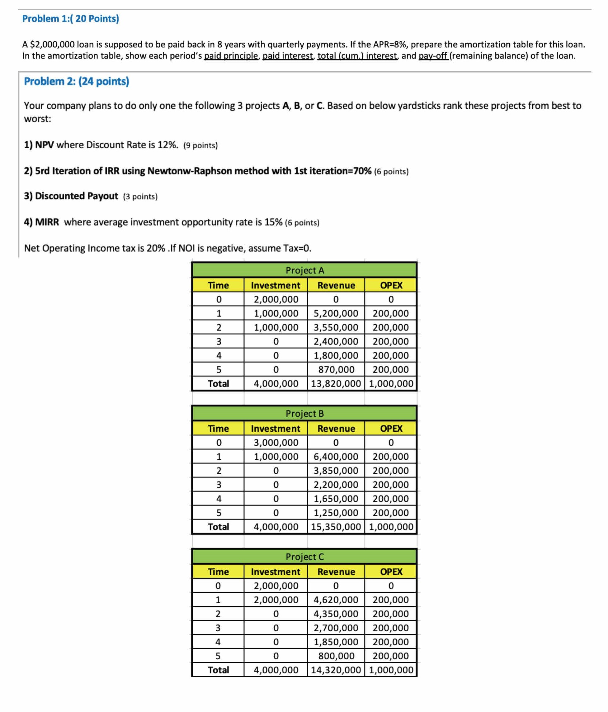 Problem 1:( 20 Points) A $2,000,000 loan is supposed to be paid ba...