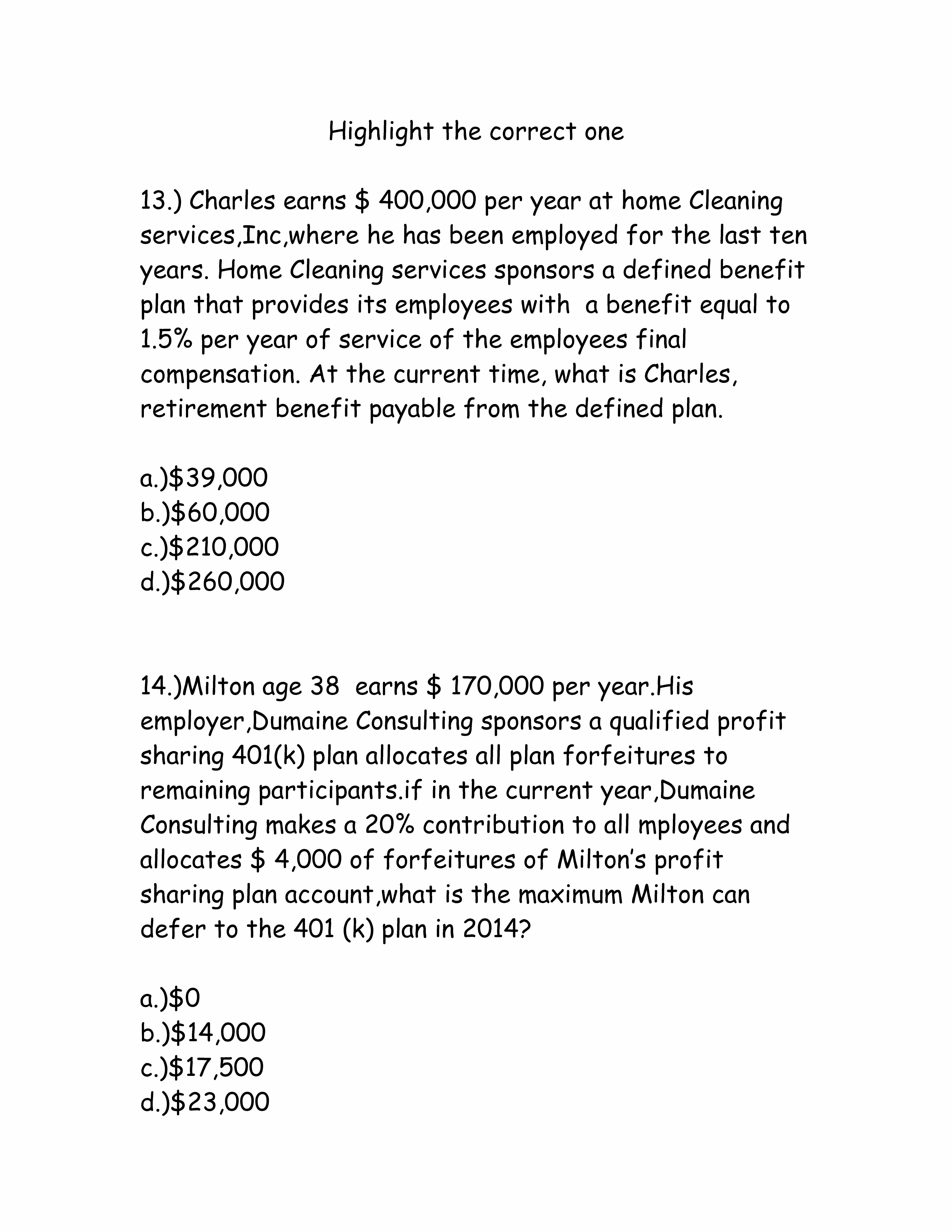 Highlight the correct one 13.) Charles earns $ 400,000 per year ho...