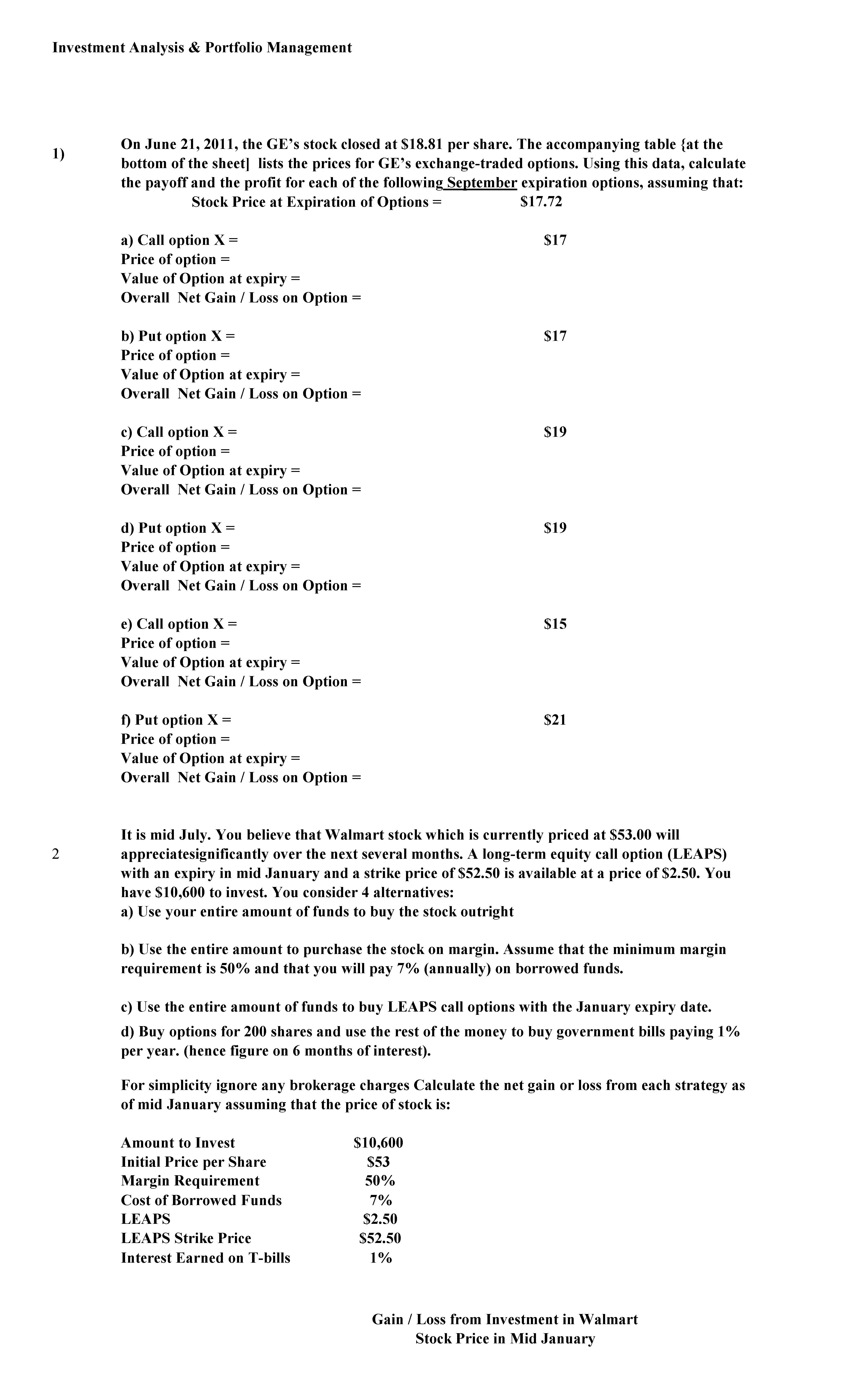 Investment Analysis & Portfolio Management 1) $17.72 a) Call...
