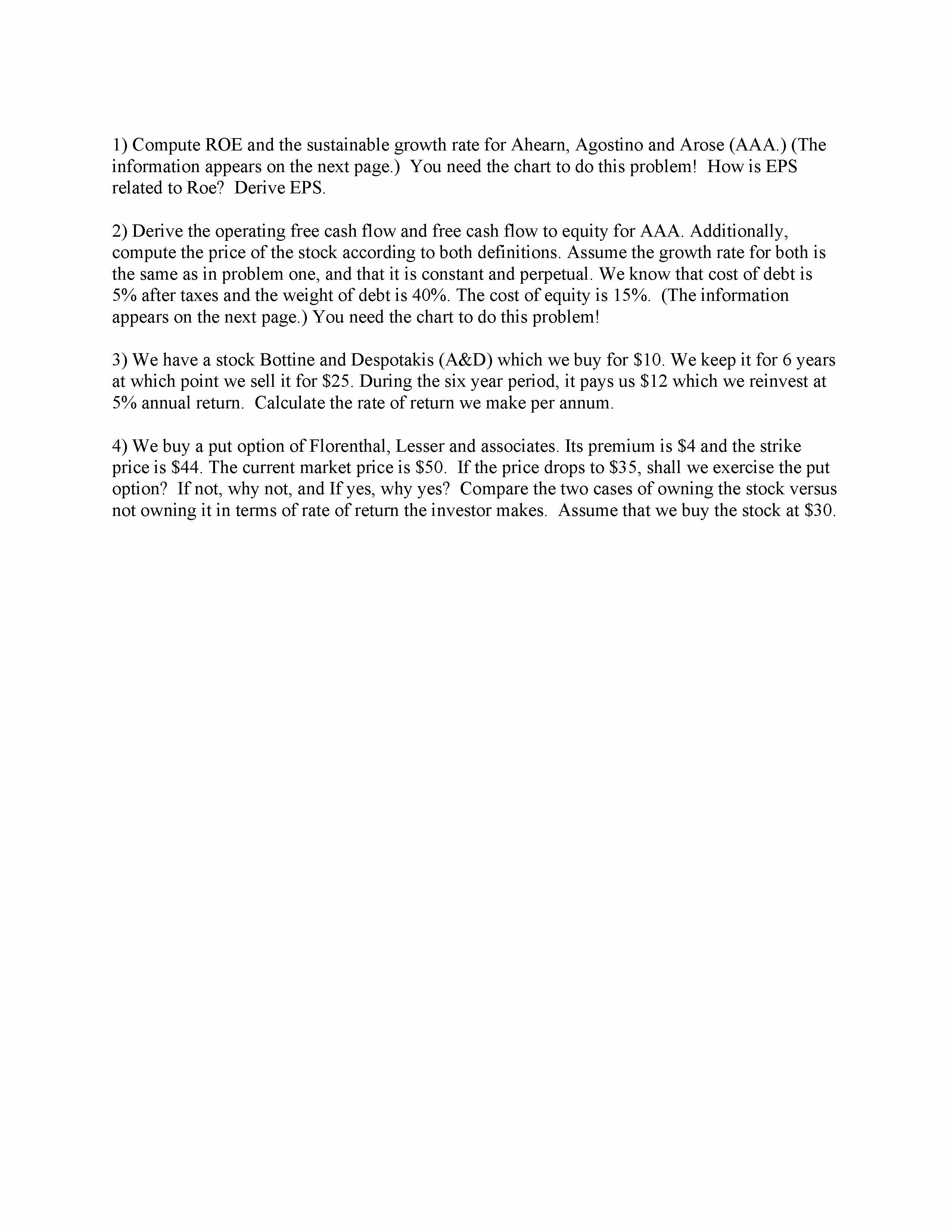 1) Compute ROE and the sustainable growth rate for Ahearn, Agostino...