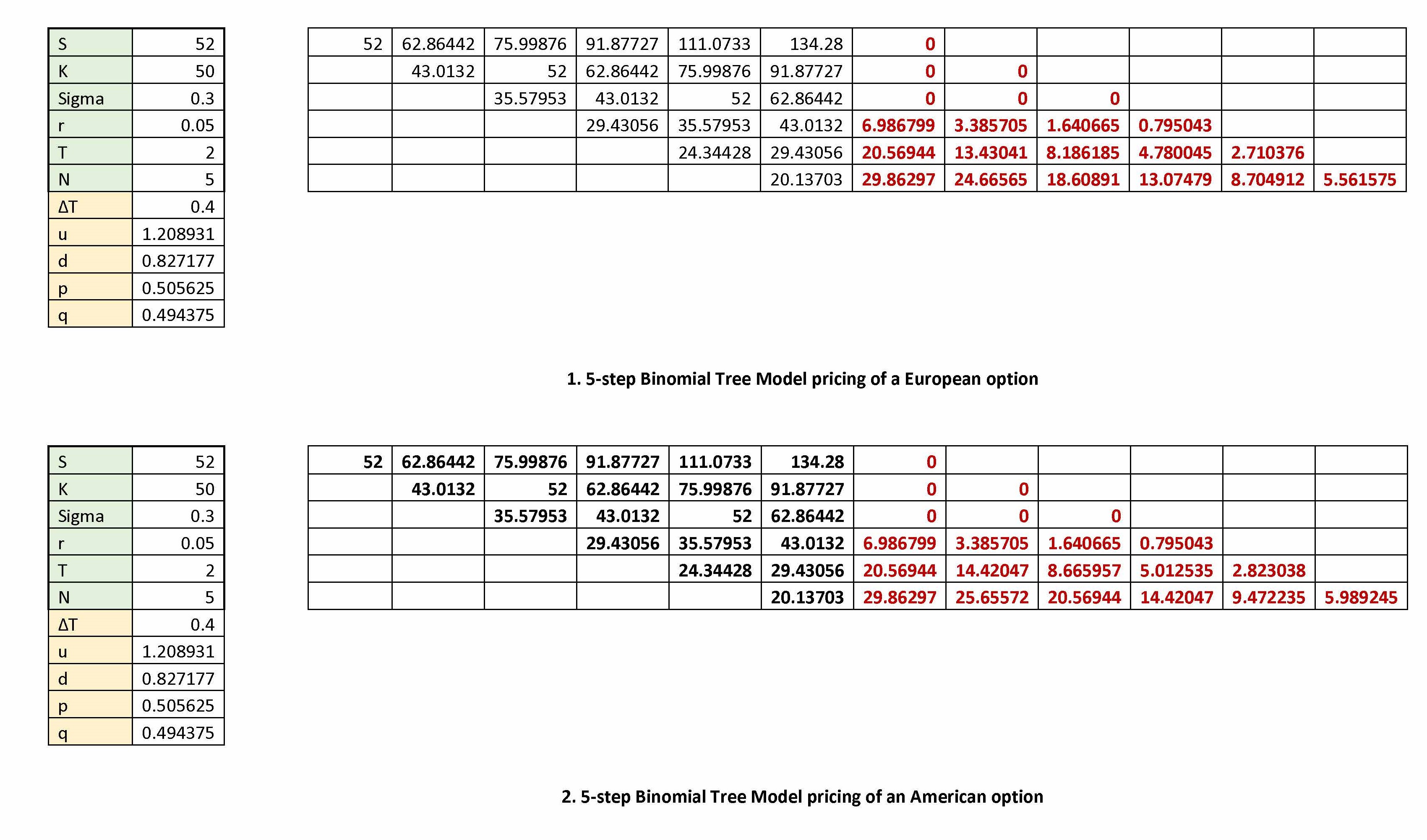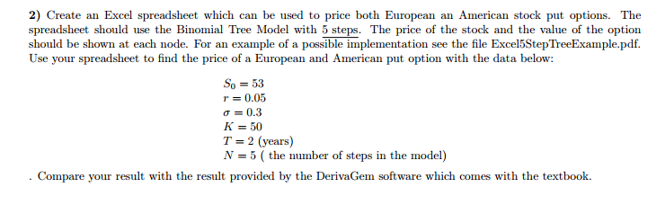 2) Create an Excel spreadsheet which can be used to price both Euro...
