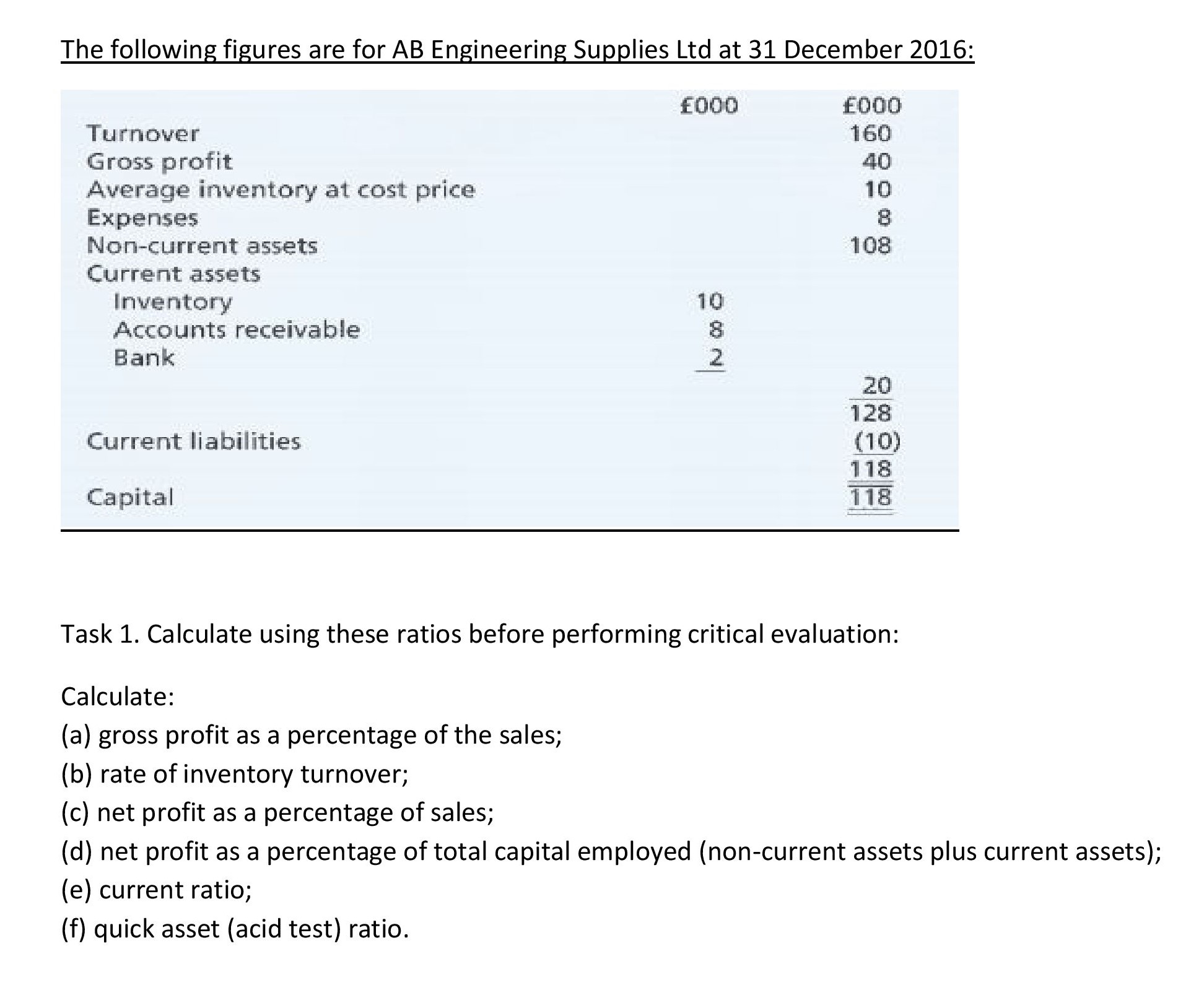 The following figures are for AB Engineering Supplies Ltd at 31 Dec...