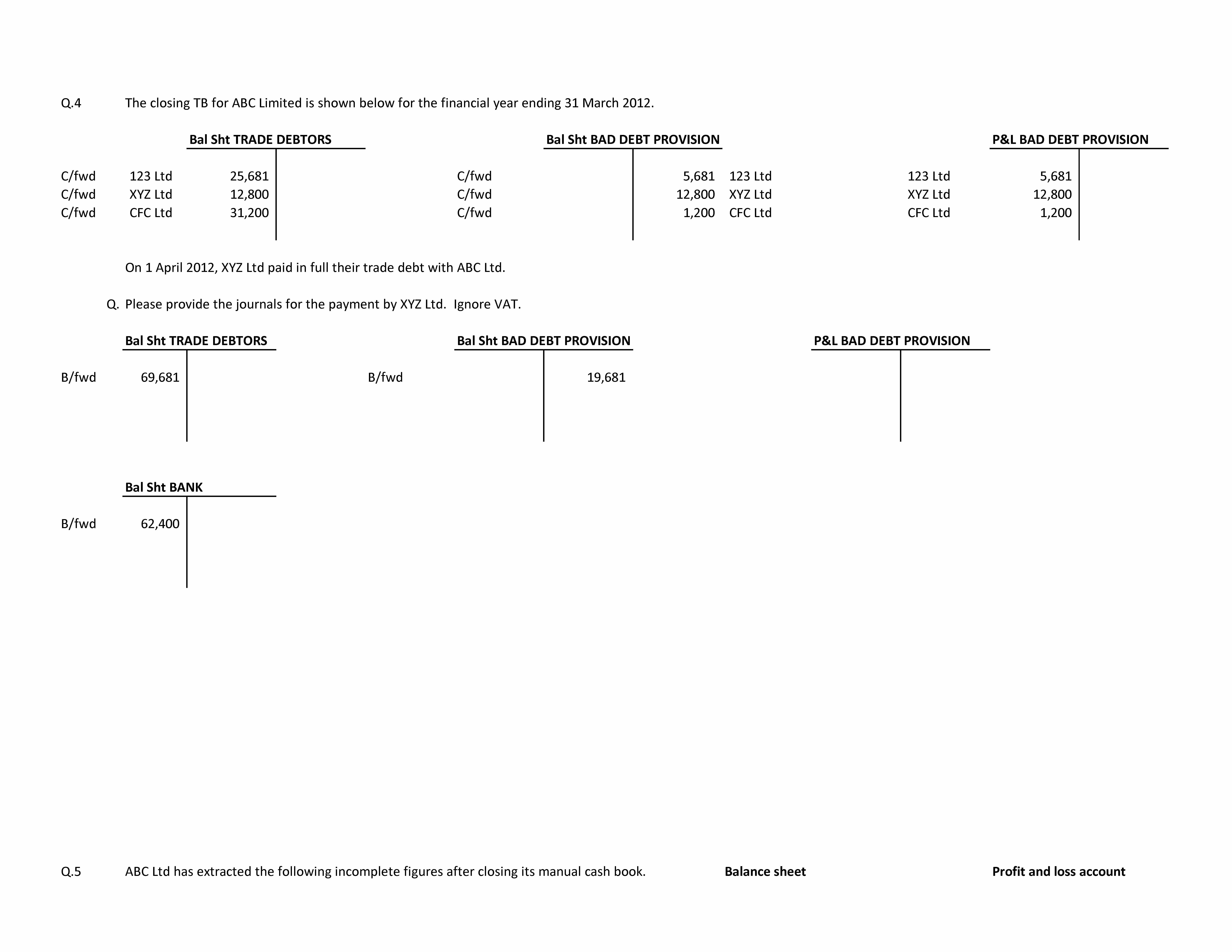 Q.1 The opening TB for ABC Limited is shown below for the financial...