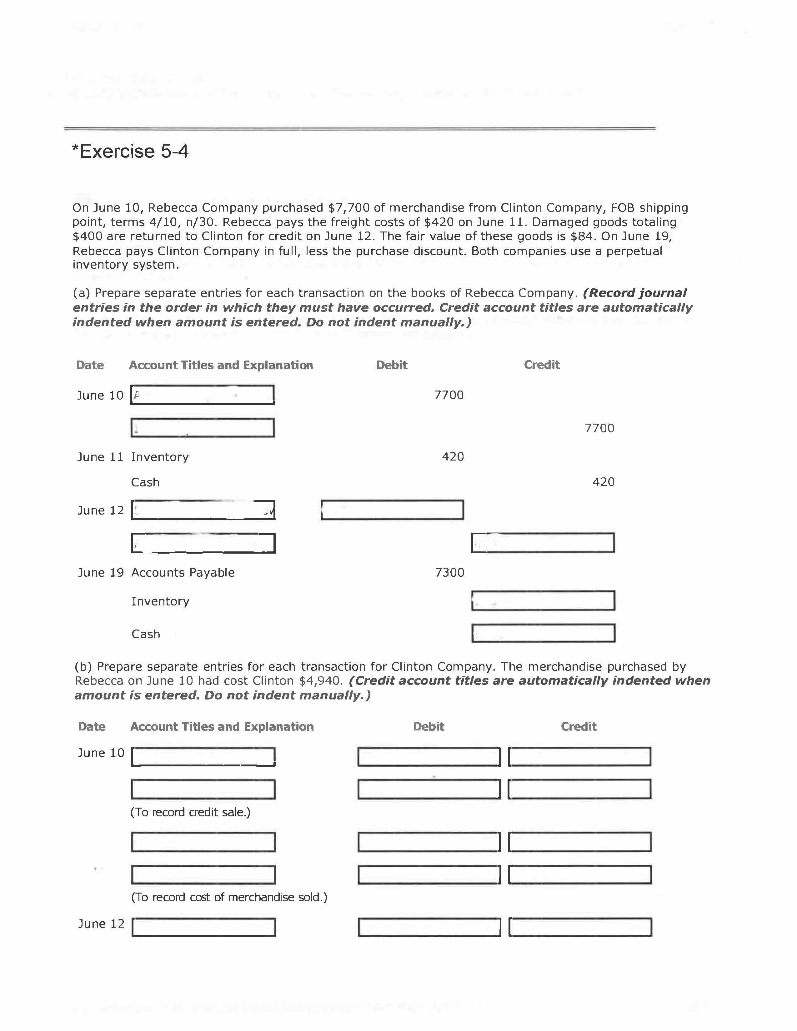 *Exercise 5-4 purchased ,700 of merchandise from Clinton Company F...
