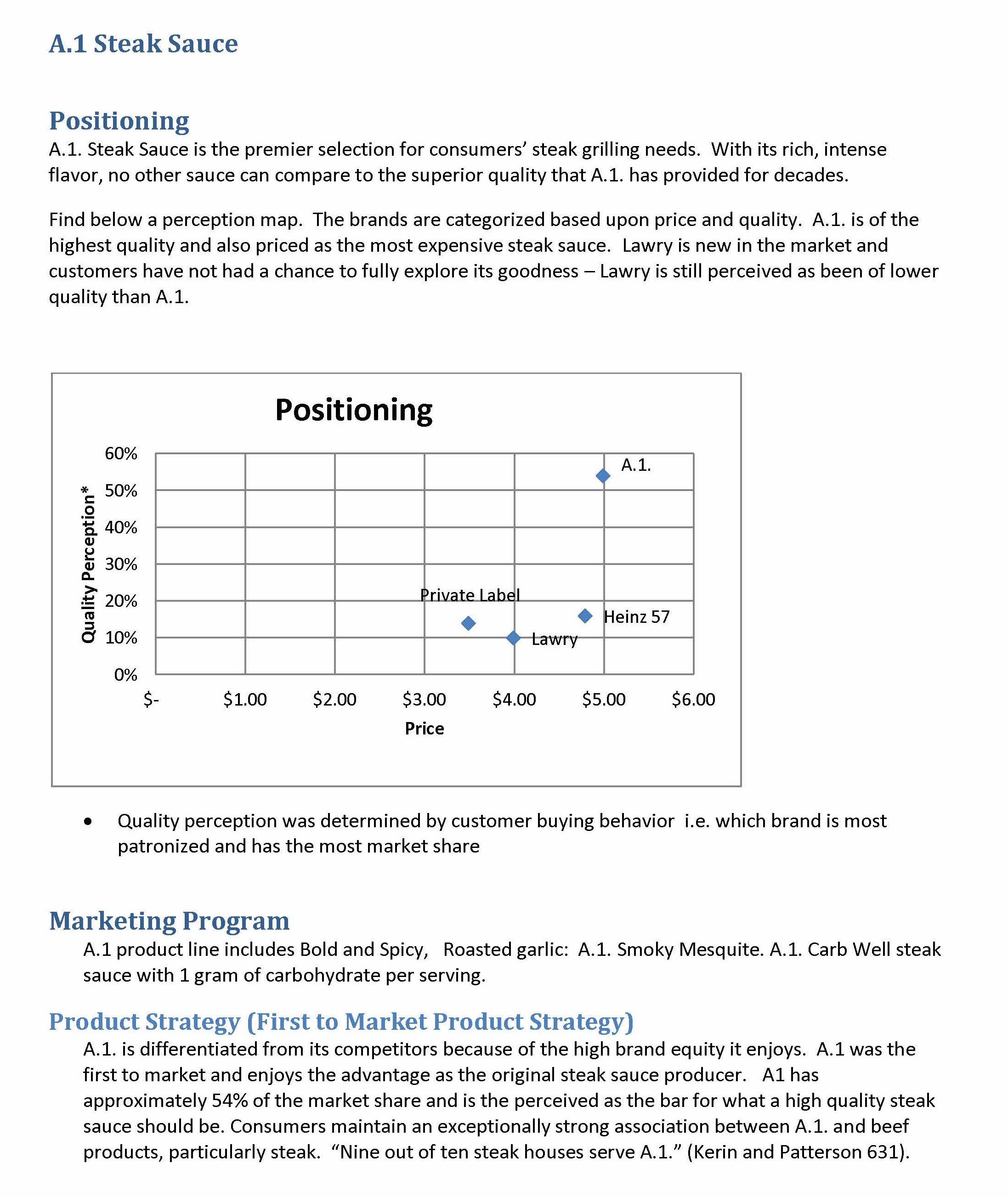 A.1 Steak Sauce Positioning A.1 Steak Saucei the premier selectio...