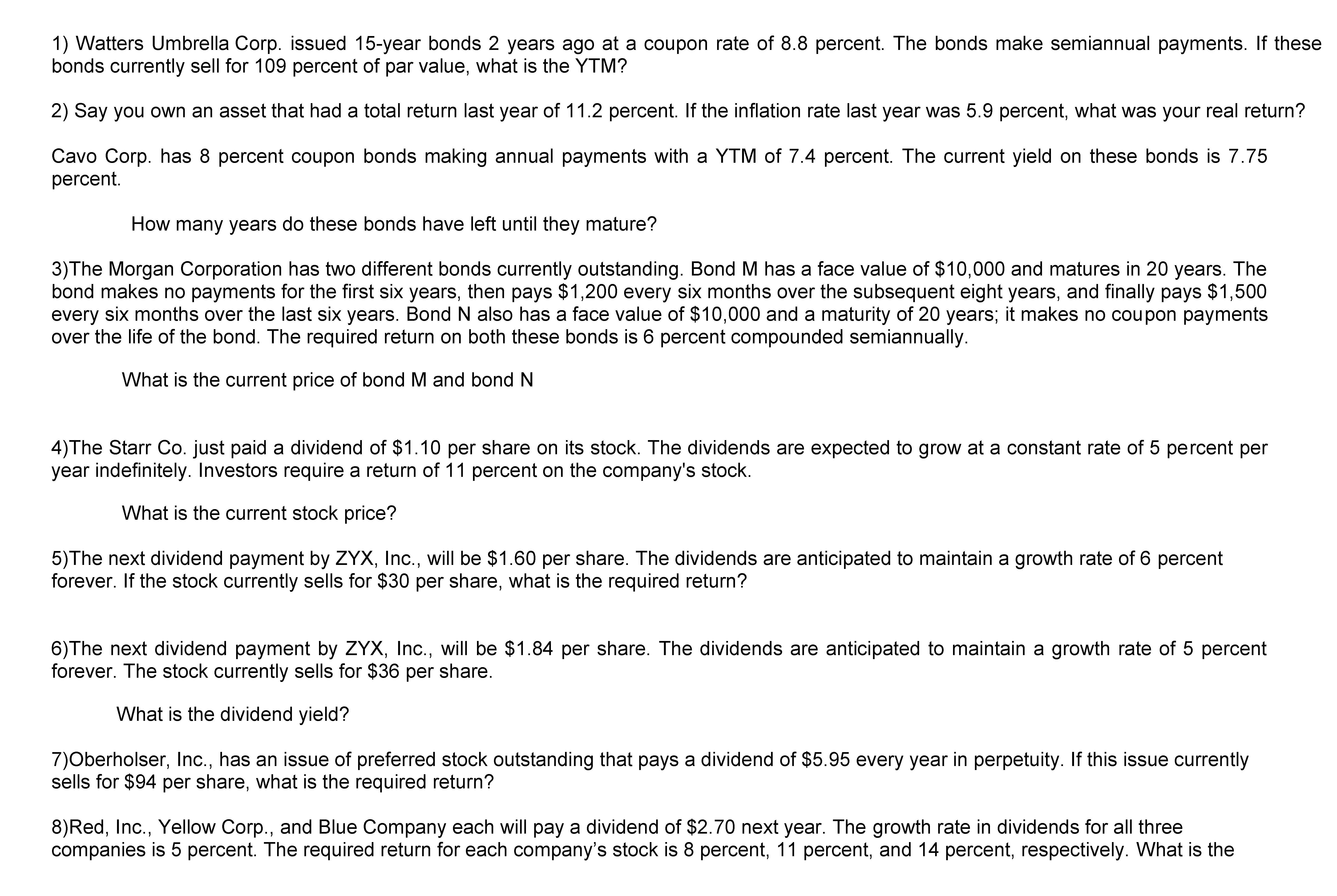 1) Watters Umbrella Corp issued 15-year bonds years ago ata coupon...