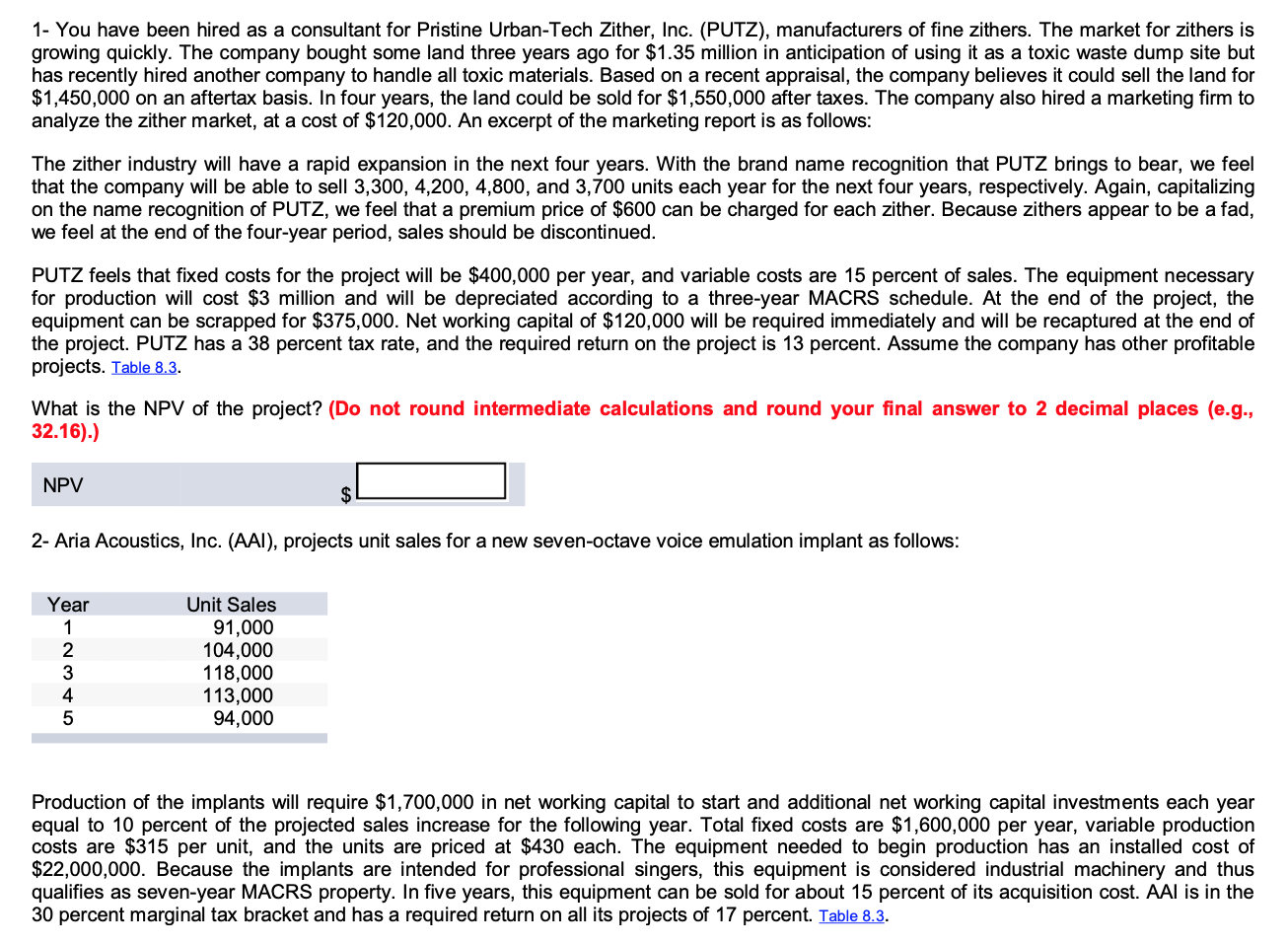 1- You have been hired as consultant for Pristine Urban Tech Zither...