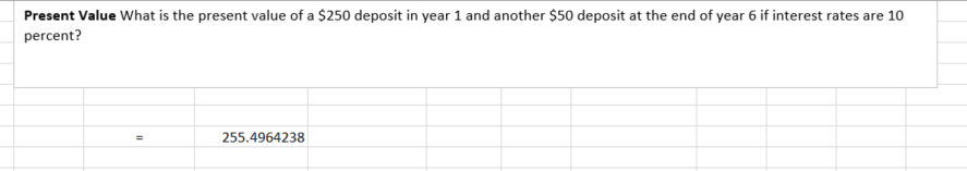 Present Value What is the present value of a $250 deposit in year...
