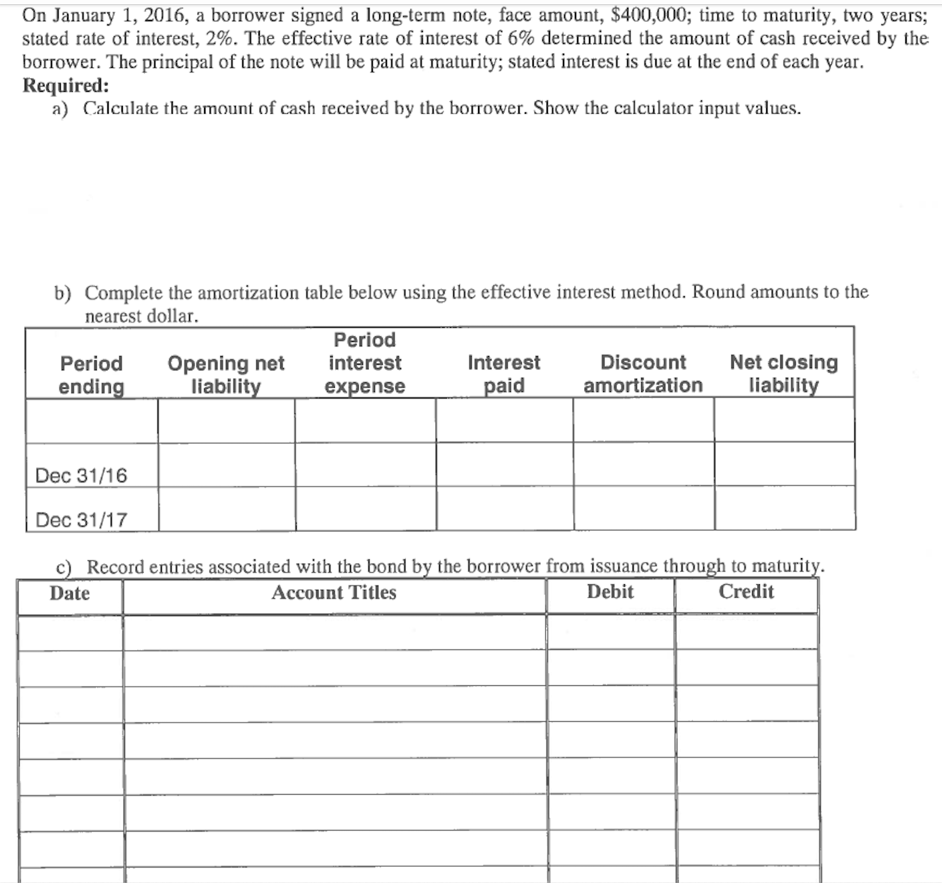 On January 1, 2016, a borrower signed a long-term note, face amount...