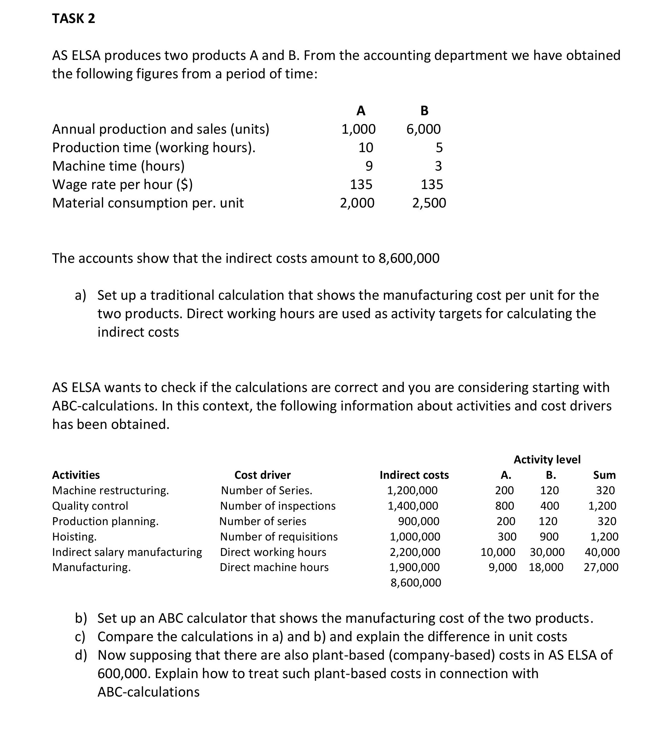 TASK 2 AS ELSA produces two products A and B. From the accounting ...
