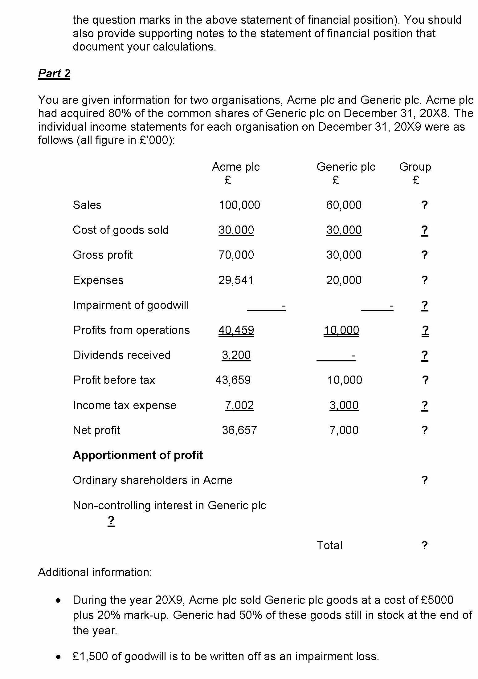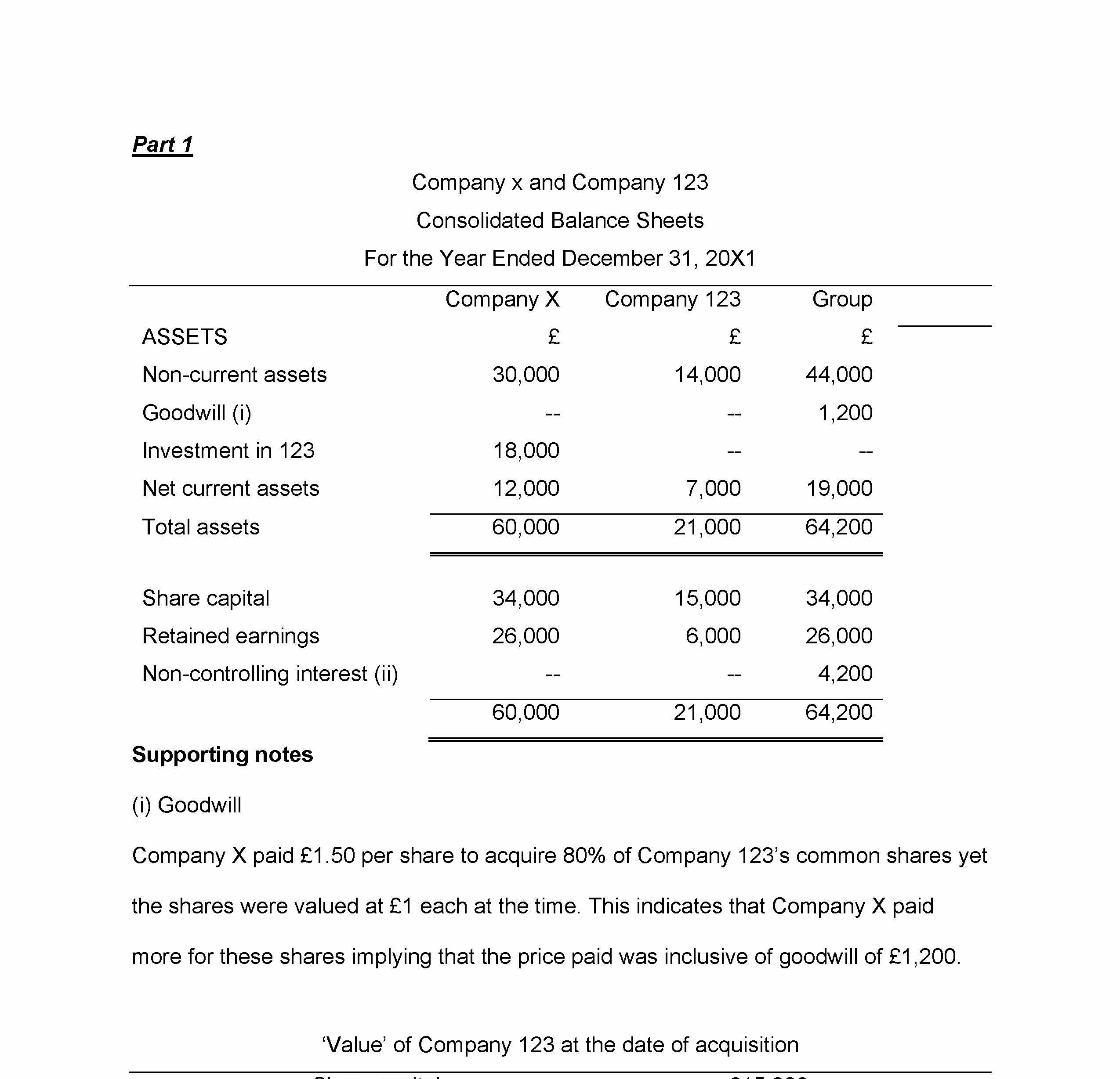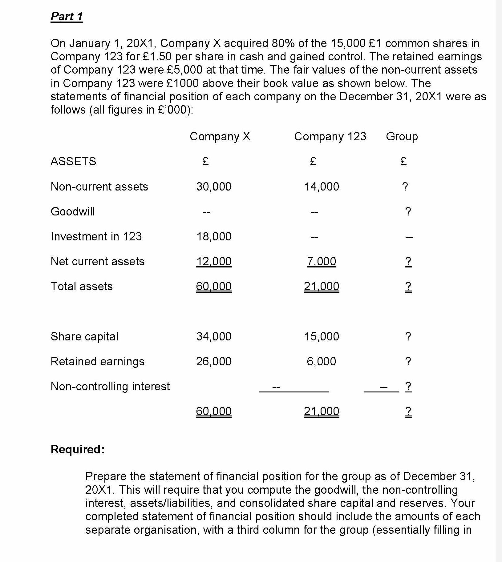 Part 1 On January 1, 20X1, Company X acquired 80% of the 15,000 £...
