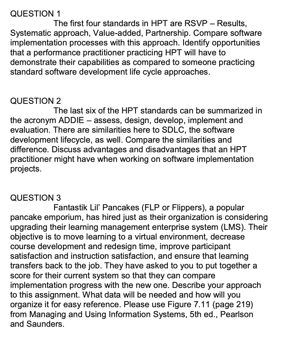 QUESTION 1 The first four standards in HPT are RSVP - Results, Sy...