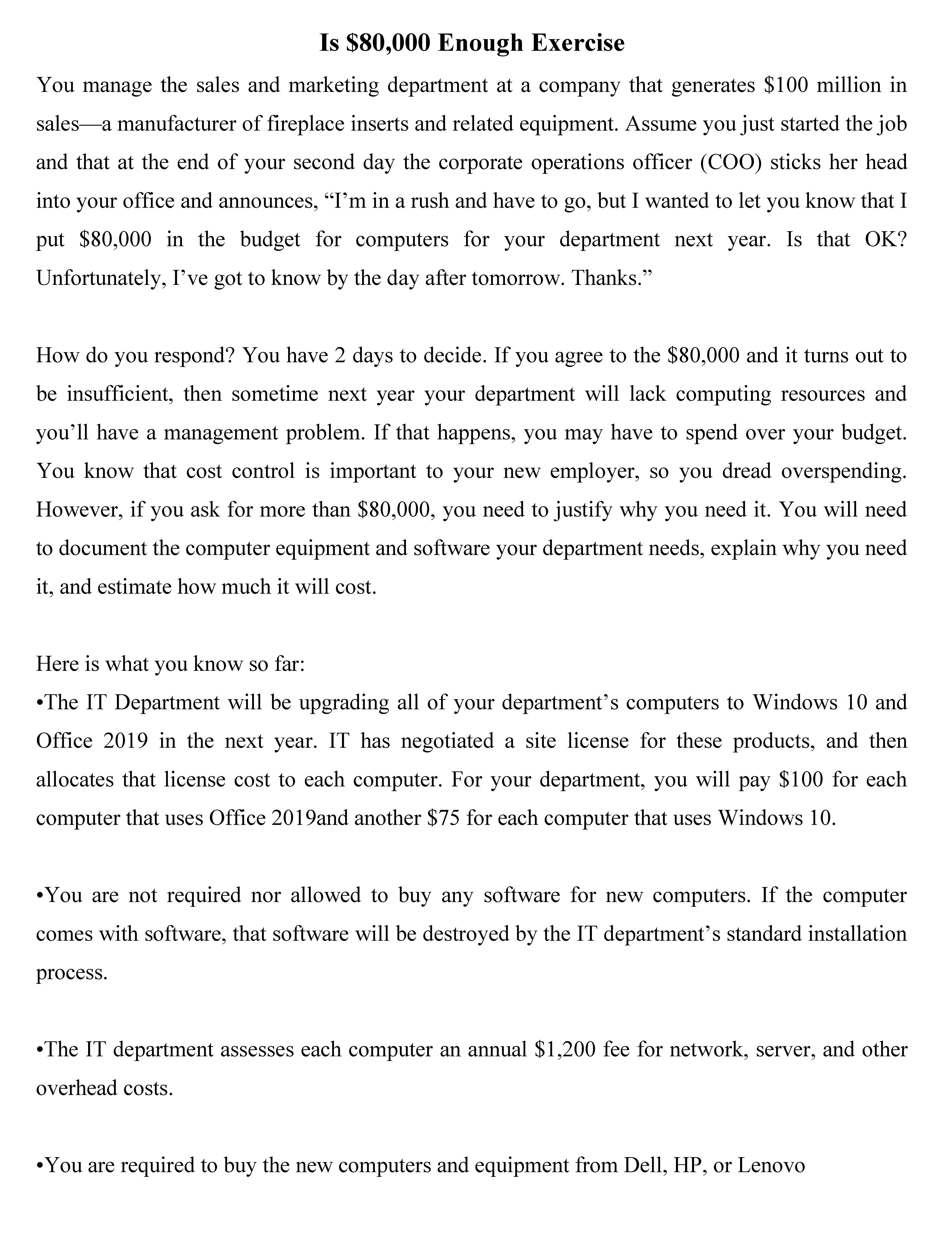 Is $80,000 Enough Exercise You manage the sales and marketing depa...