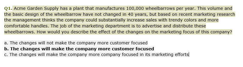 Q1. Acme Garden Supply has a plant that manufactures 100,000 wheelb...