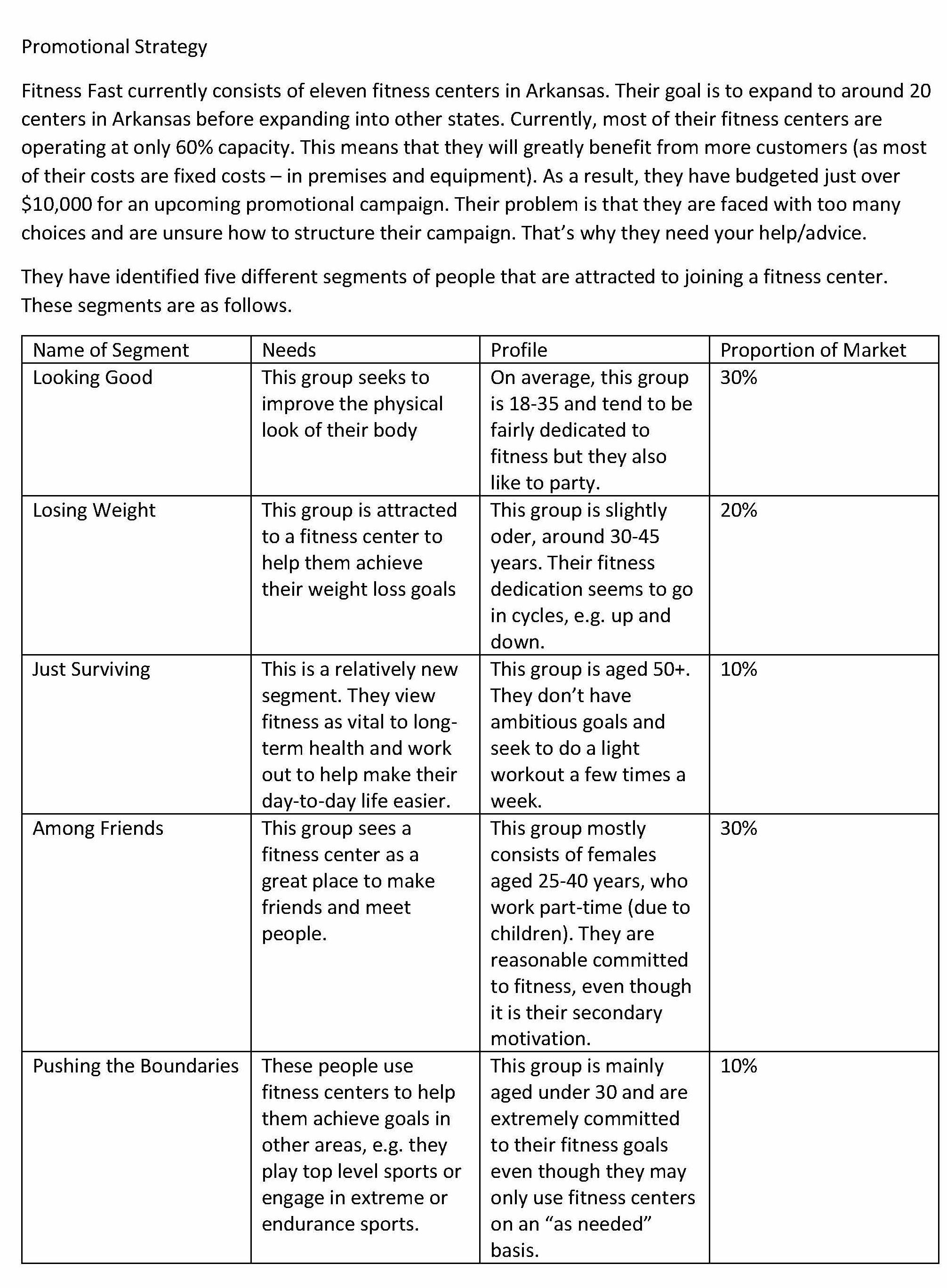Promotional Strategy Fitness Fast currently consists of eleven fit...