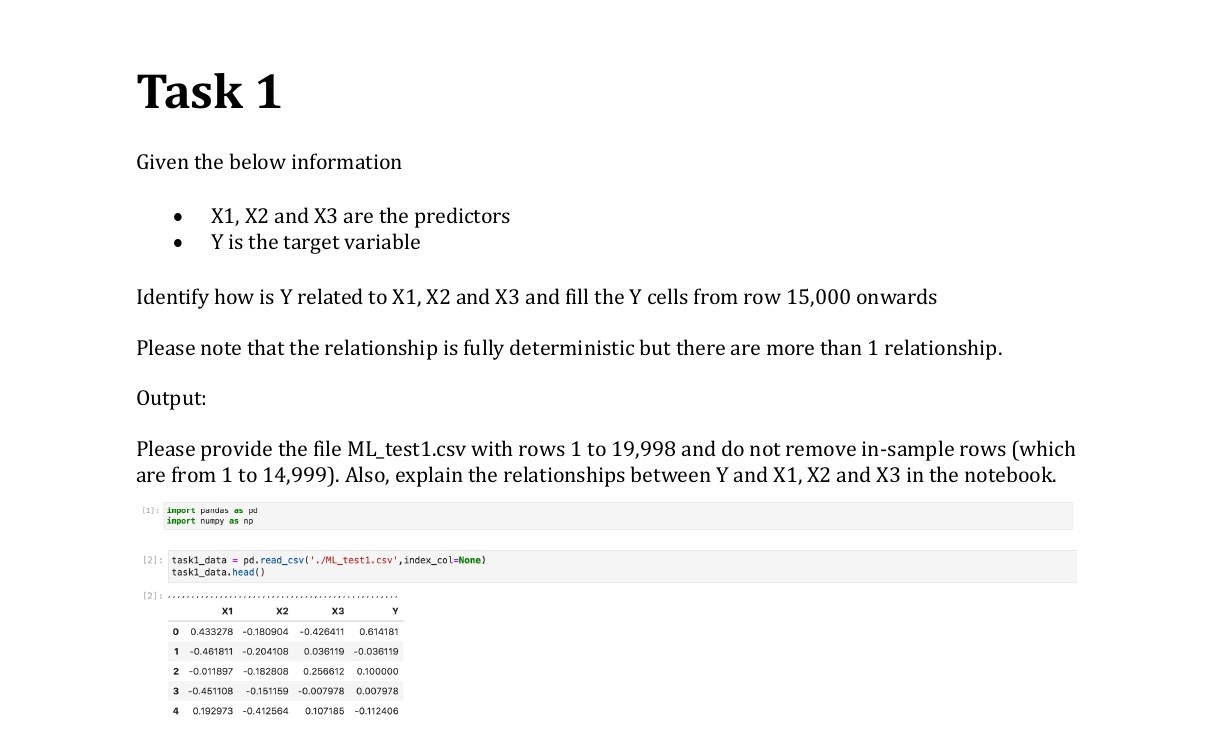 Task 1 Given the below information X1, X2 and X3 are the predicto...