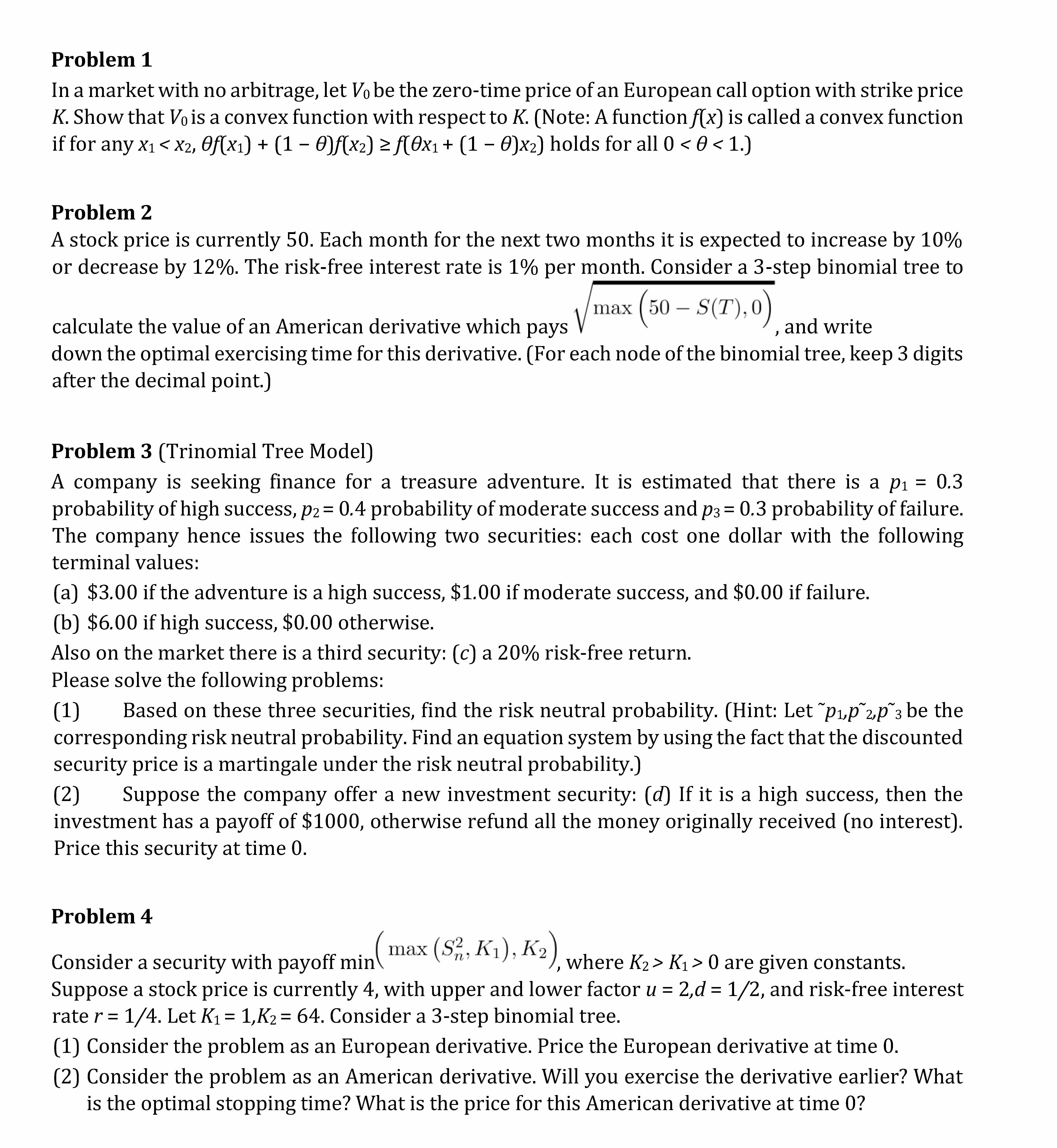 Problem 1 In a market with no arbitrage, let Vobe the zero-time pr...