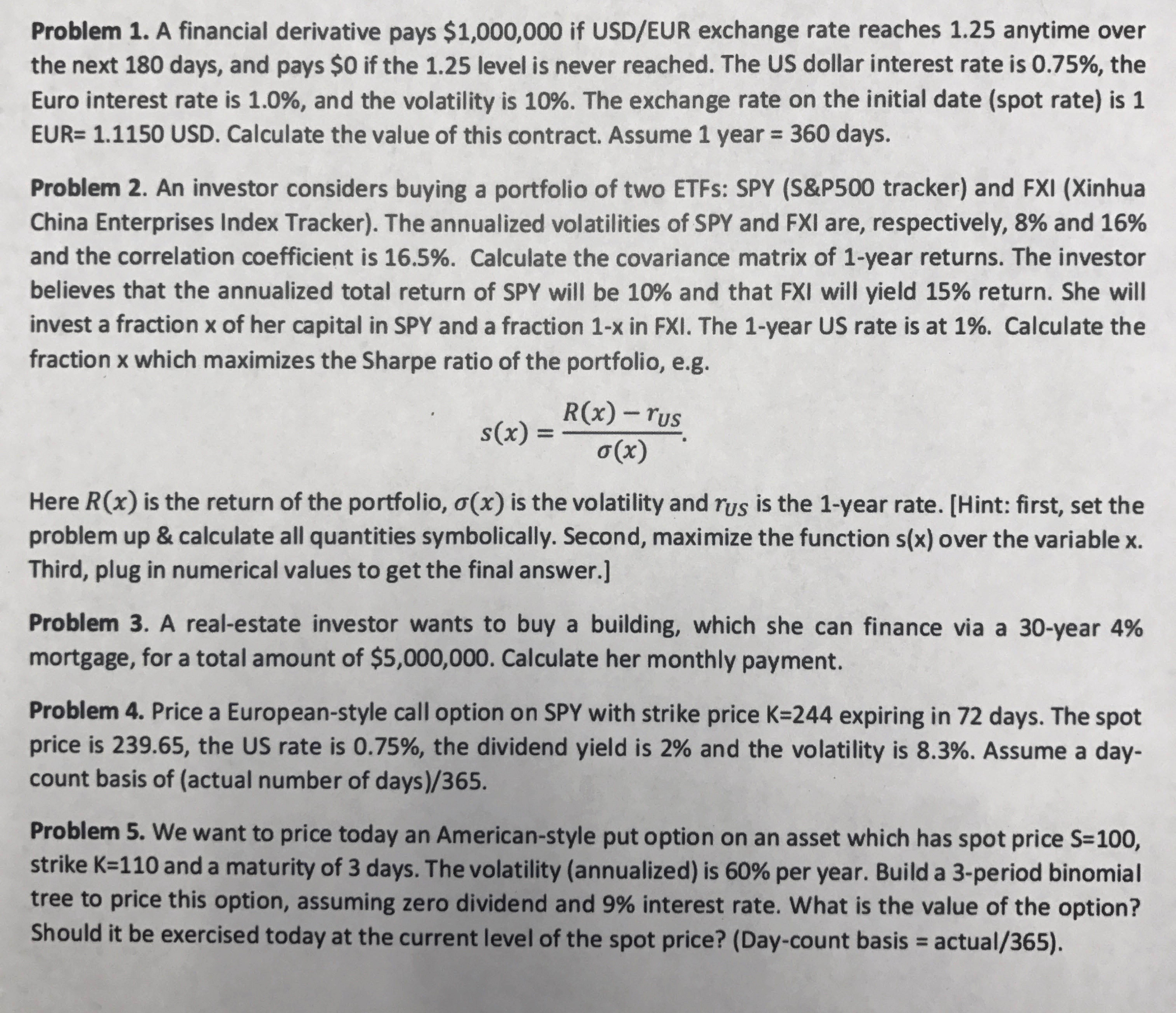 Problem 1. A financial derivative pays $1,000,000 if USD/EUR exchan...