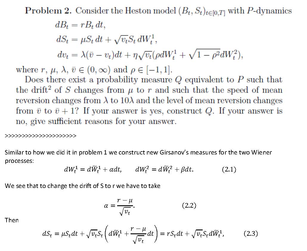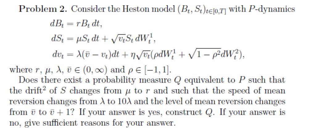 Problem 2. Consider the Heston model (Bt, with P-dynamics dBt = d...