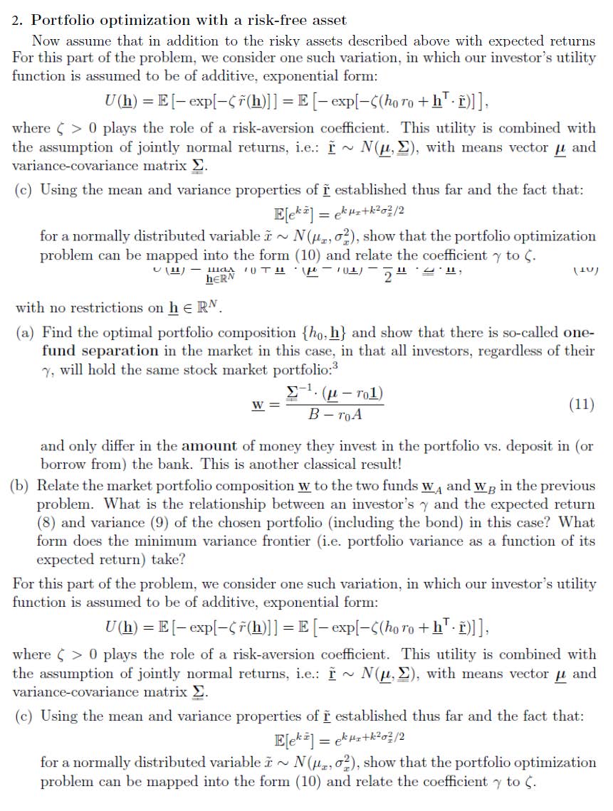 2. Portfolio optimization with a risk-free asset Now assume that i...