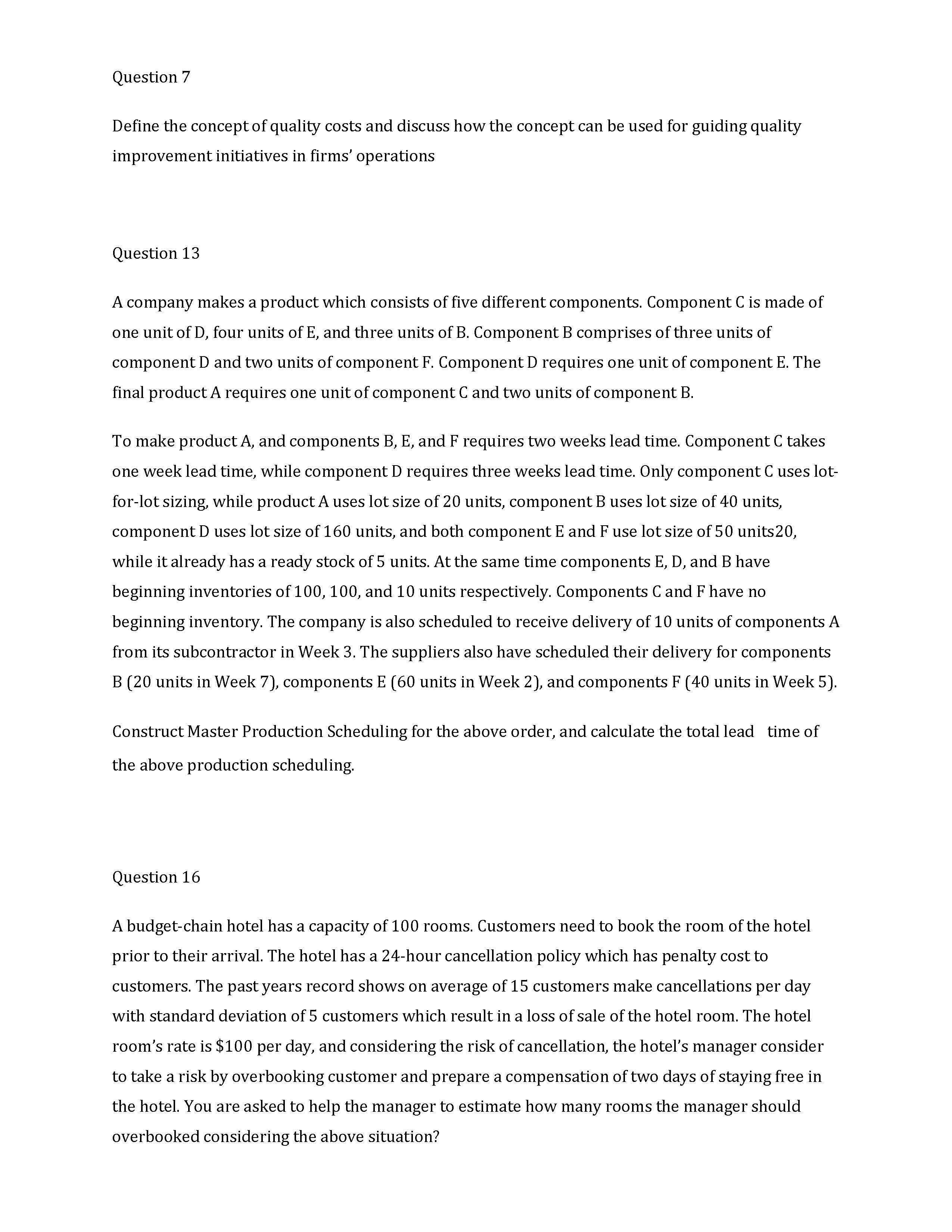 Question 7 Define the concept of quality costs and discuss how the...