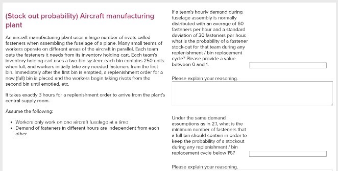 If a team's hourly demand during (Stock out probability) Aircraft ...