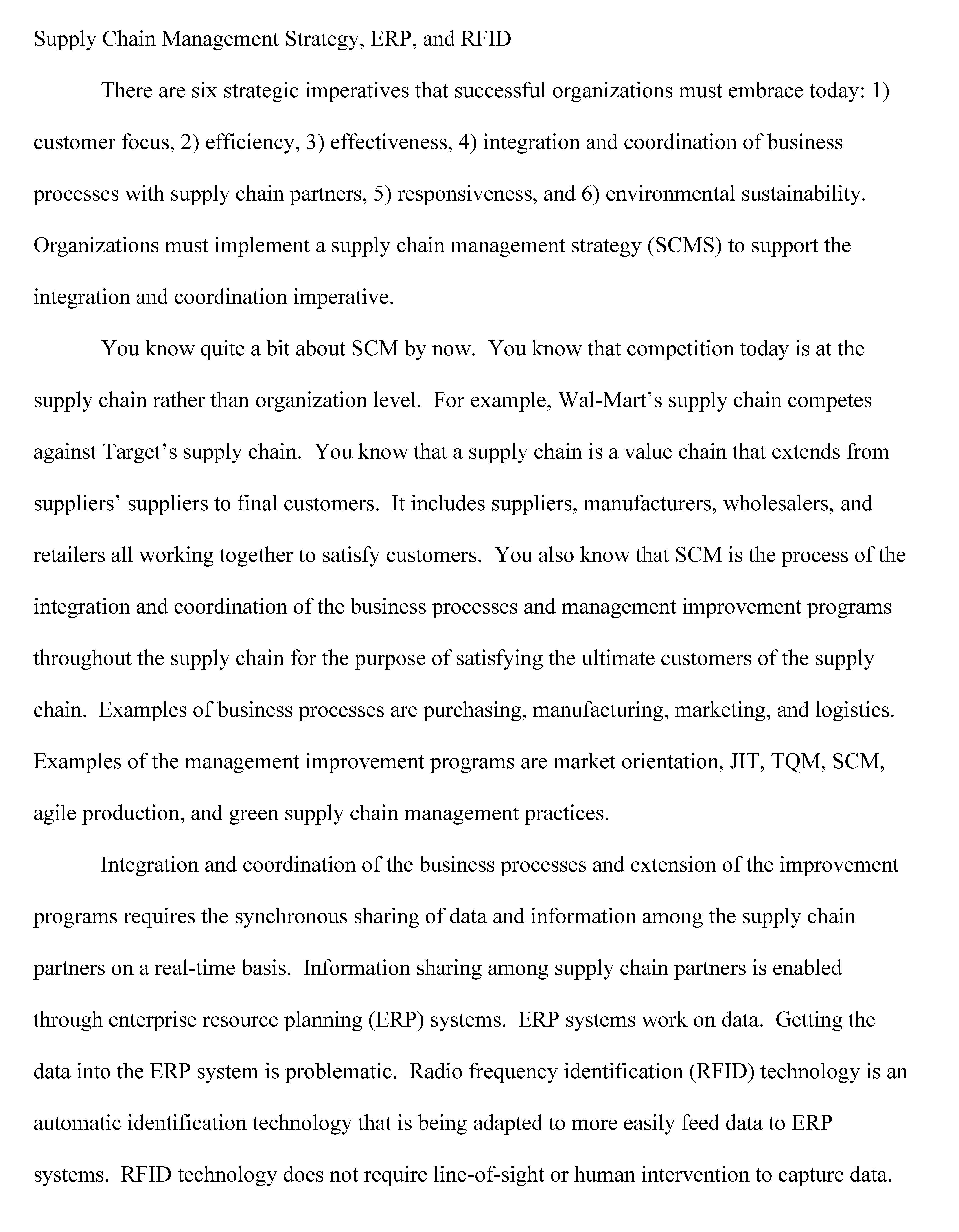 Supply Chain Management Strategy. ERP. and RFID There are strategi...