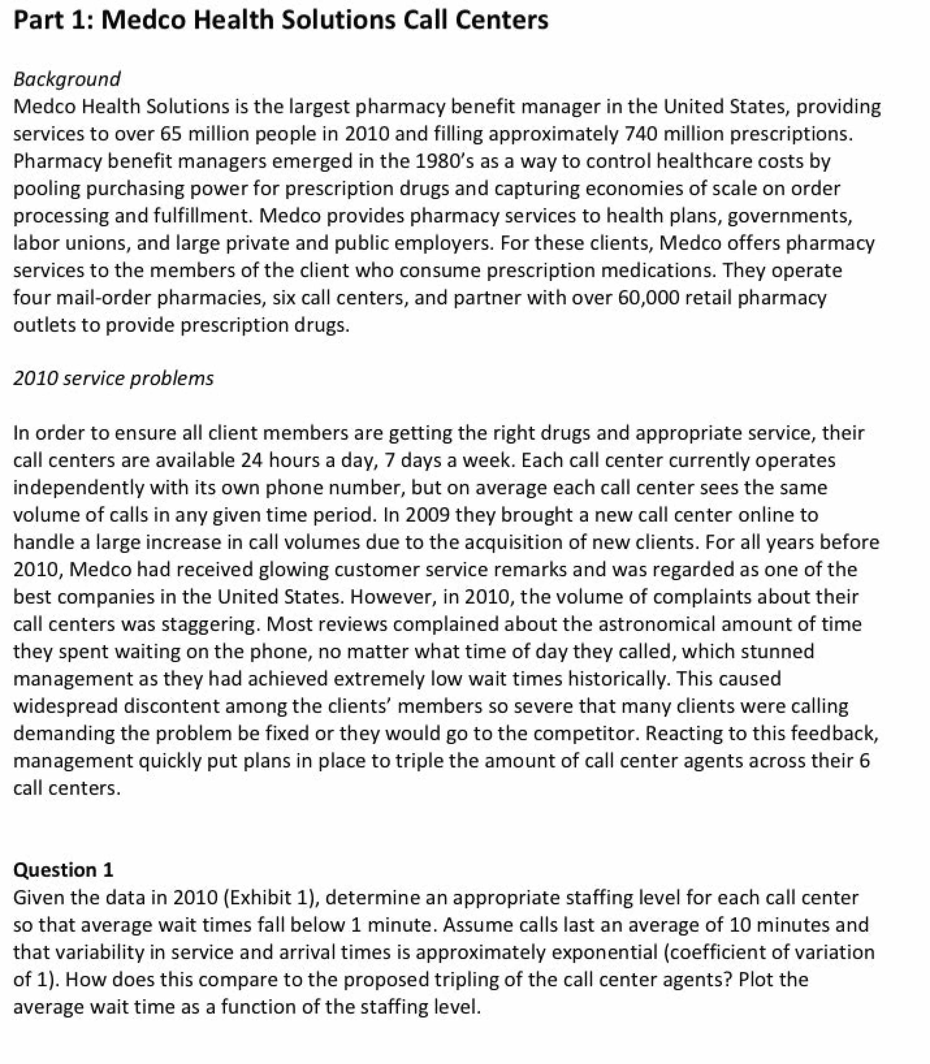 Part 1: Medco Health Solutions Call Centers Background Medco Heal...