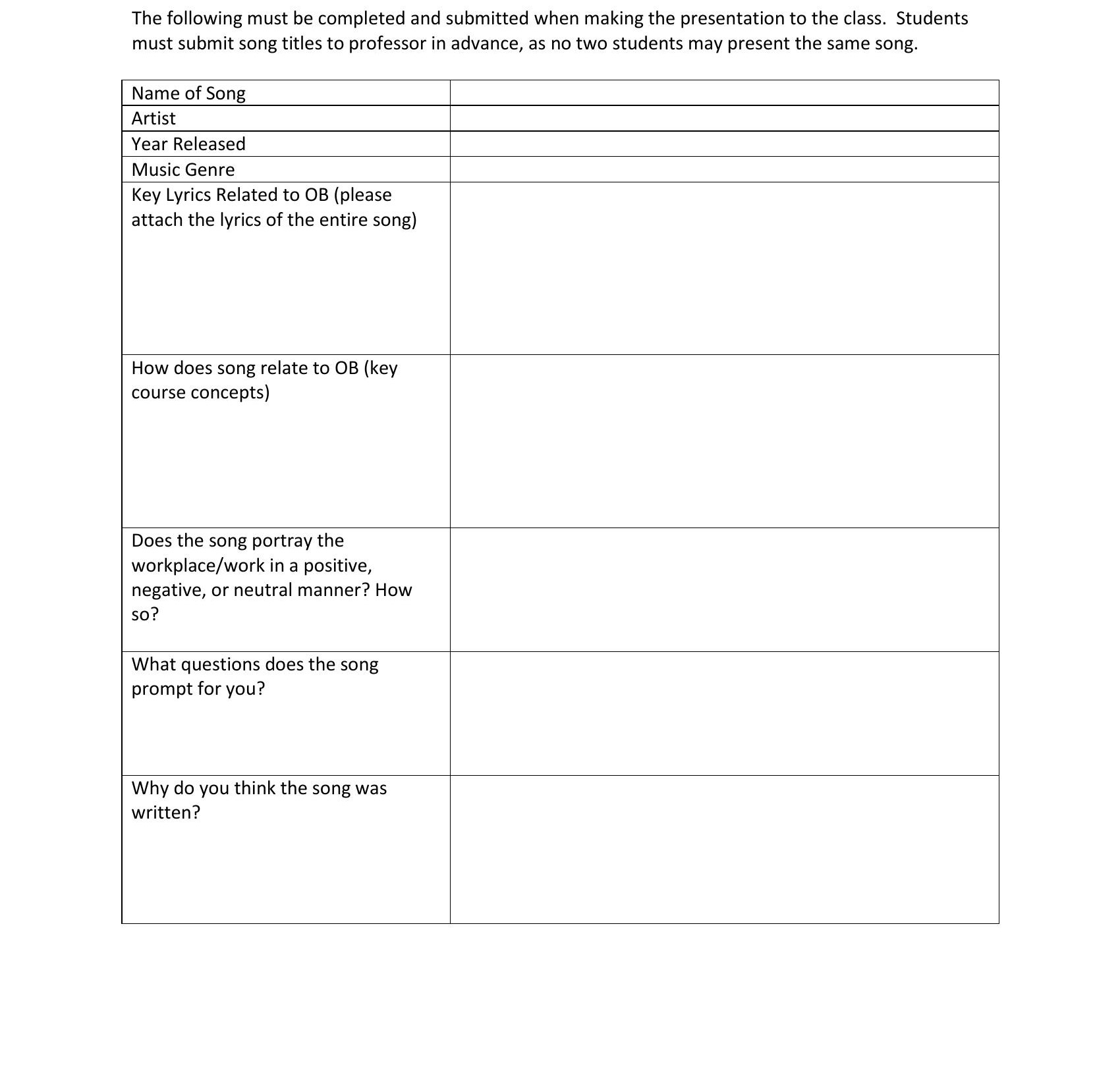 The following must be completed and submitted when making the prese...