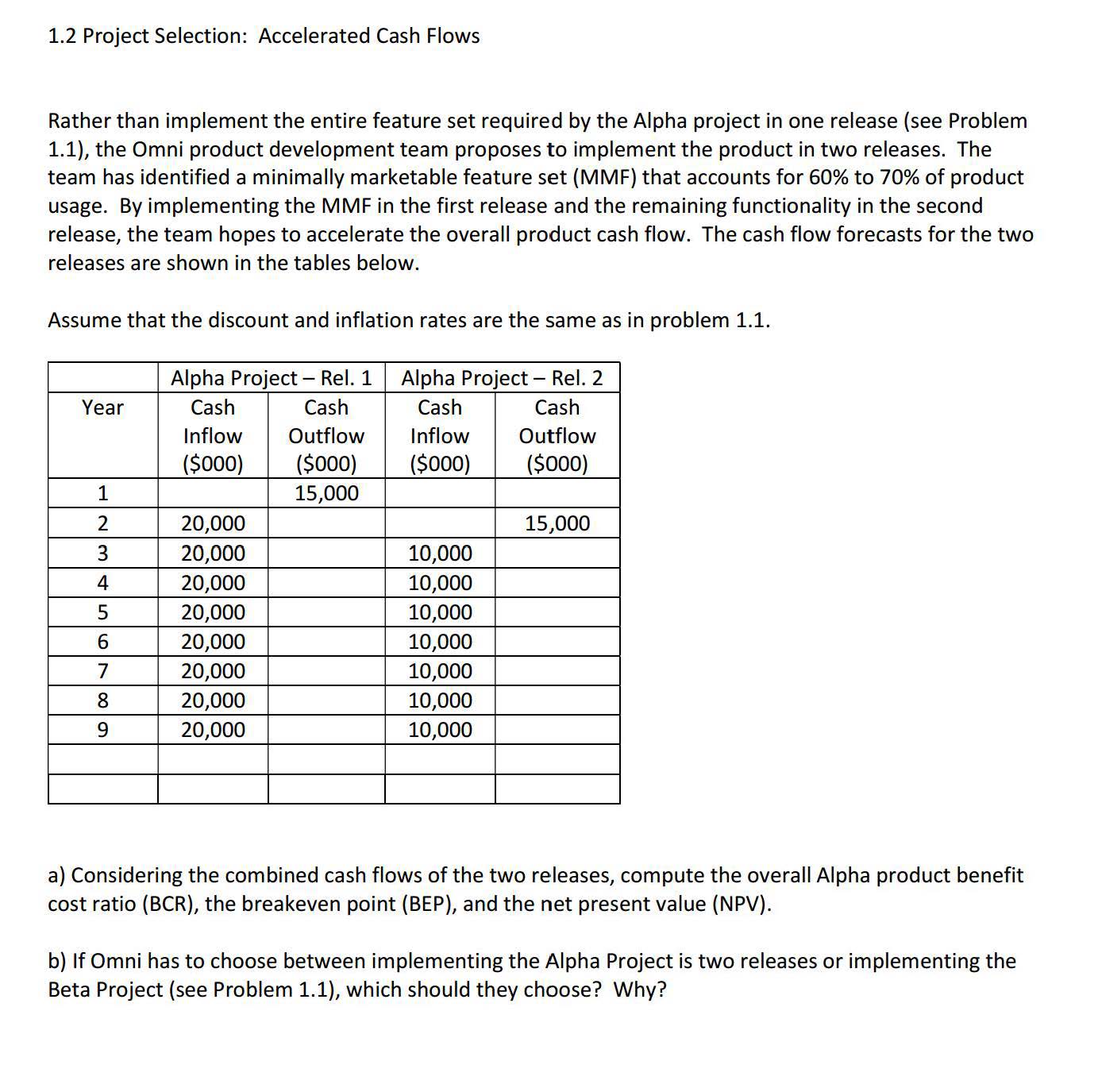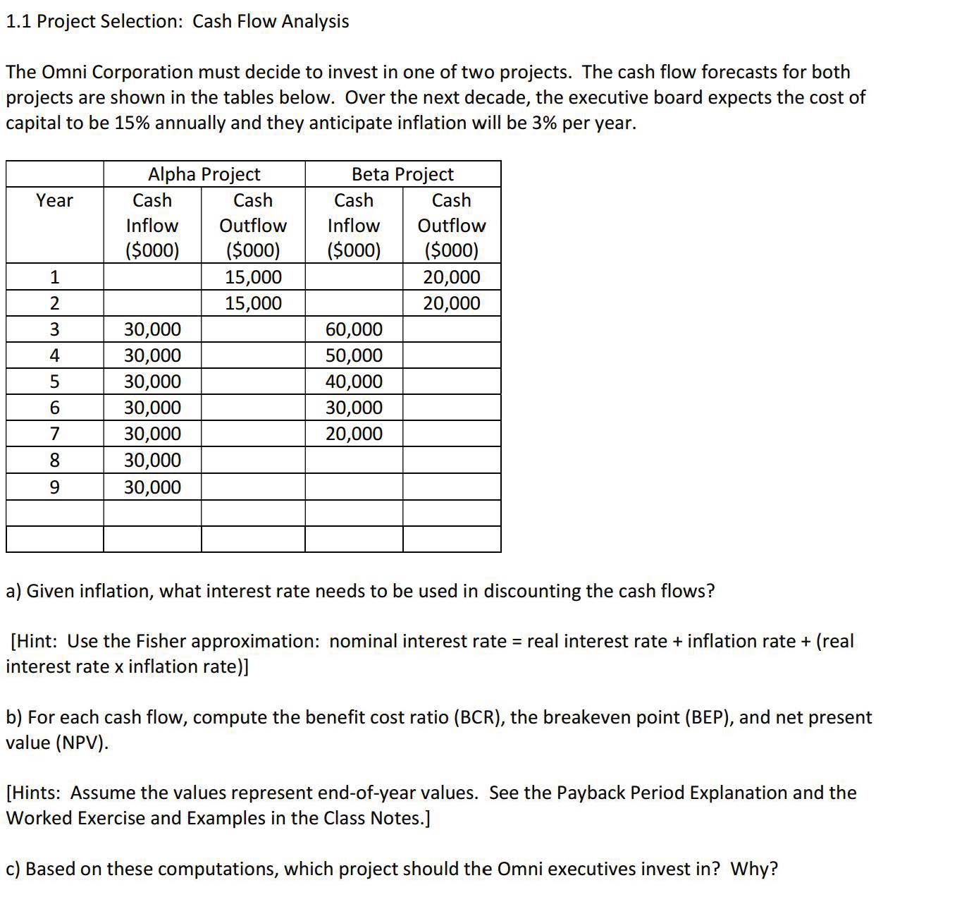 1.1 Project Selection: Cash Flow Analysis The Omni Corporation mus...