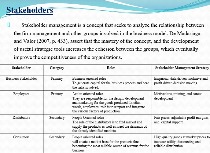 Make a poerpoint presentation on the topic: An analysis of stakehol...