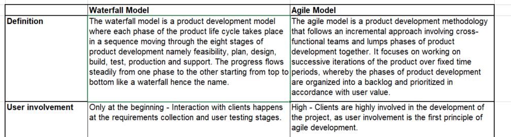 Write a comparison between Waterfall Model and Agile Model.