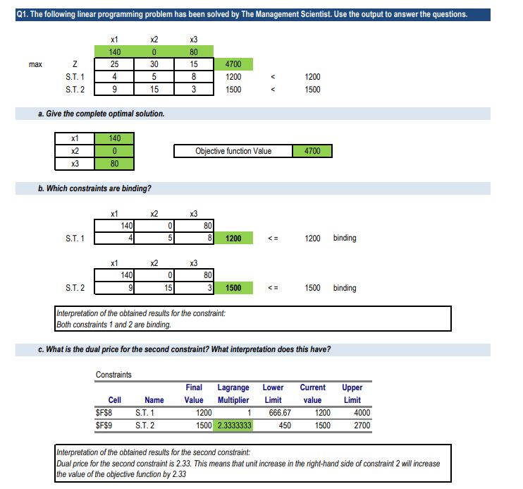 1. The following linear programming problem has been solved by The...