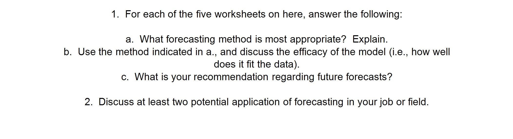 1. For each of the five worksheets on here, answer the following: ...