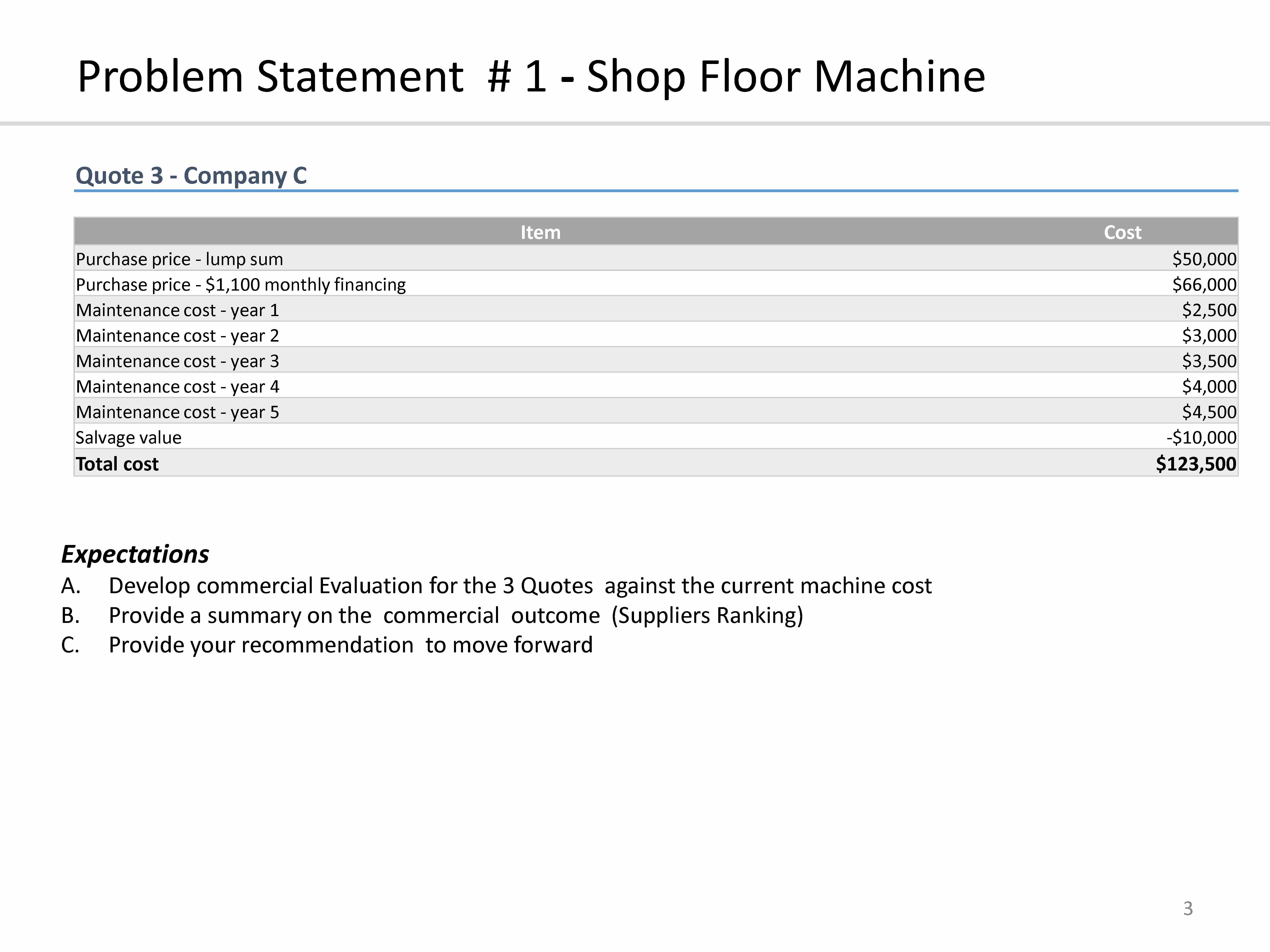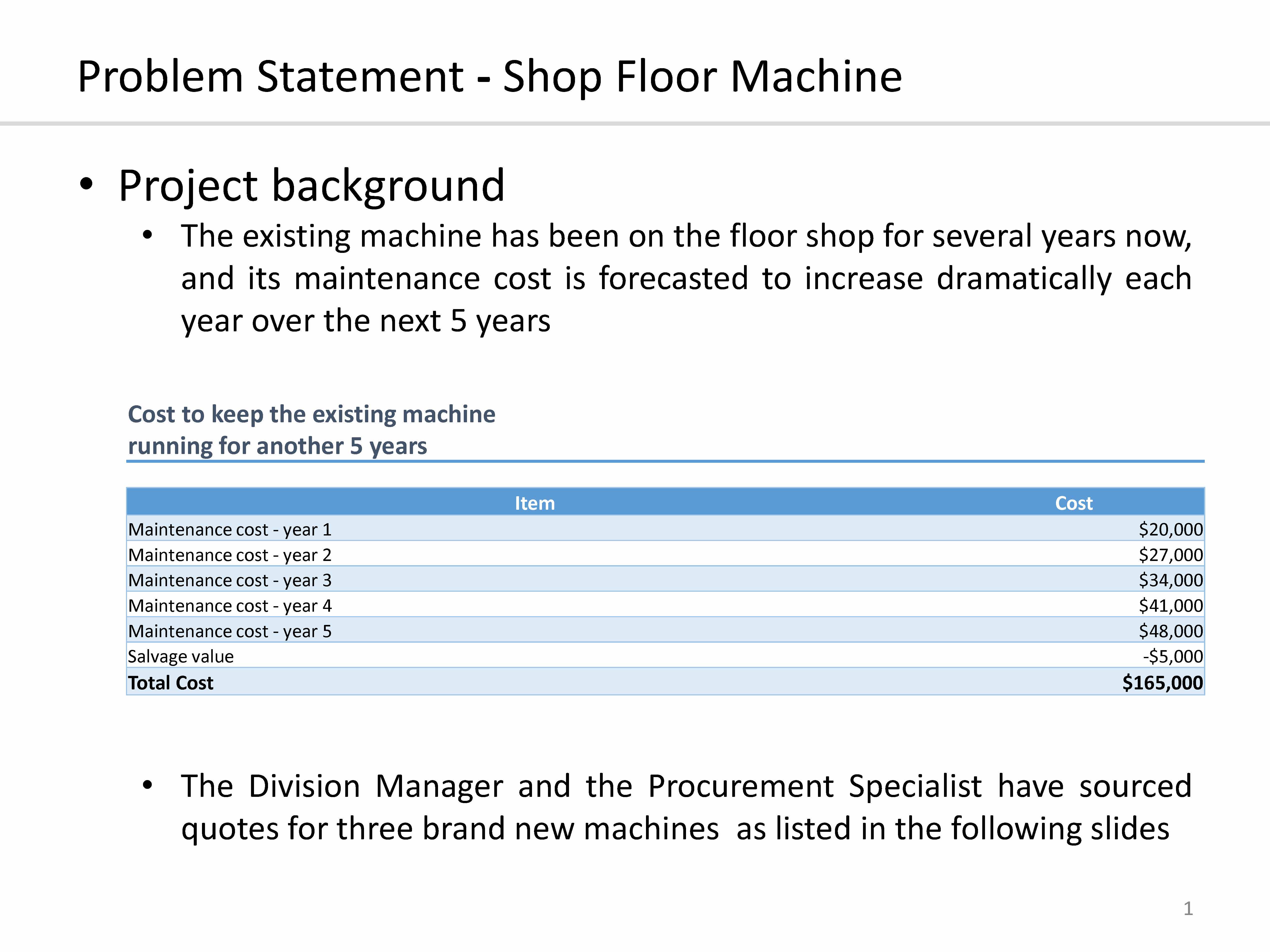 Problem Statement - Shop Floor Machine 1 • Project background...