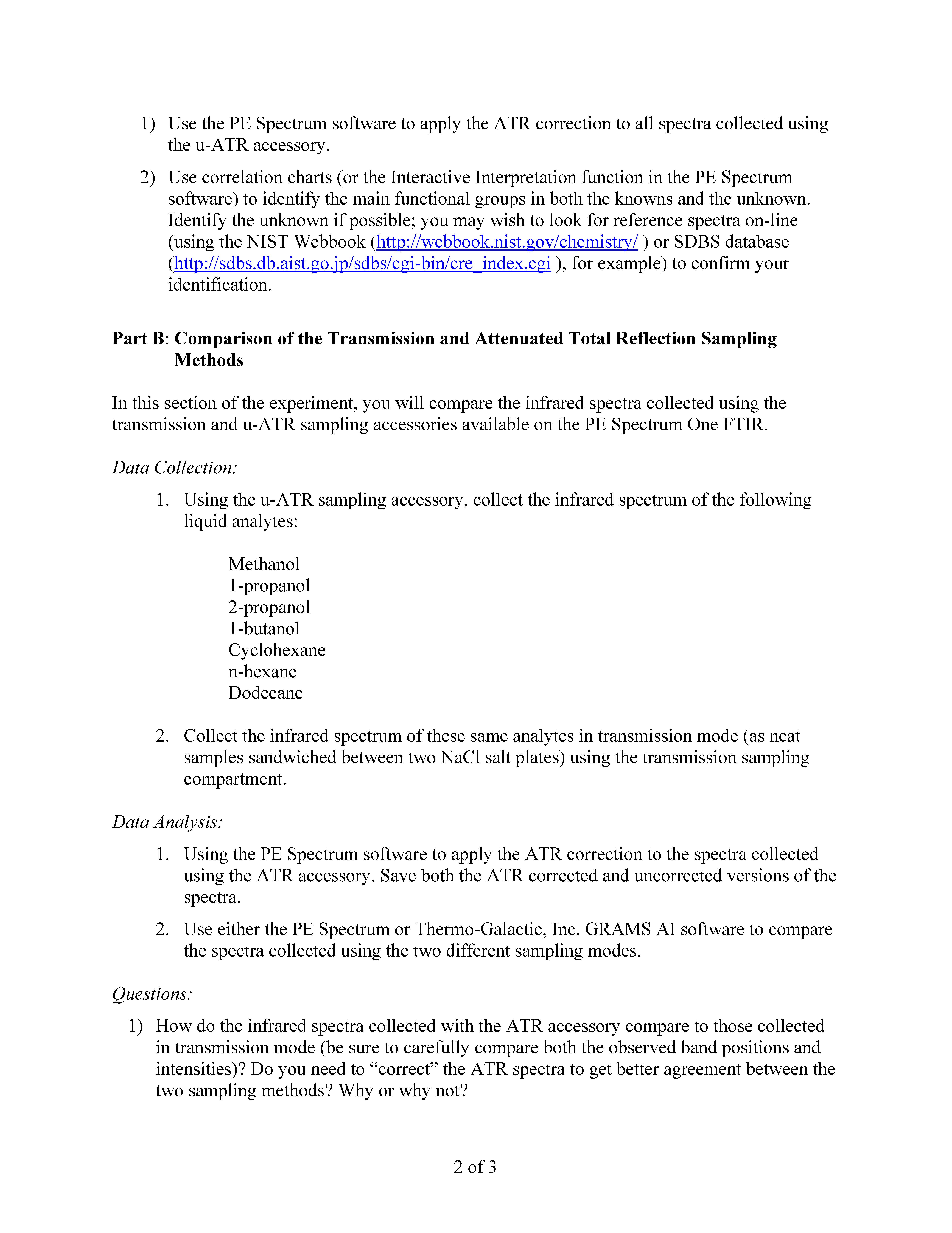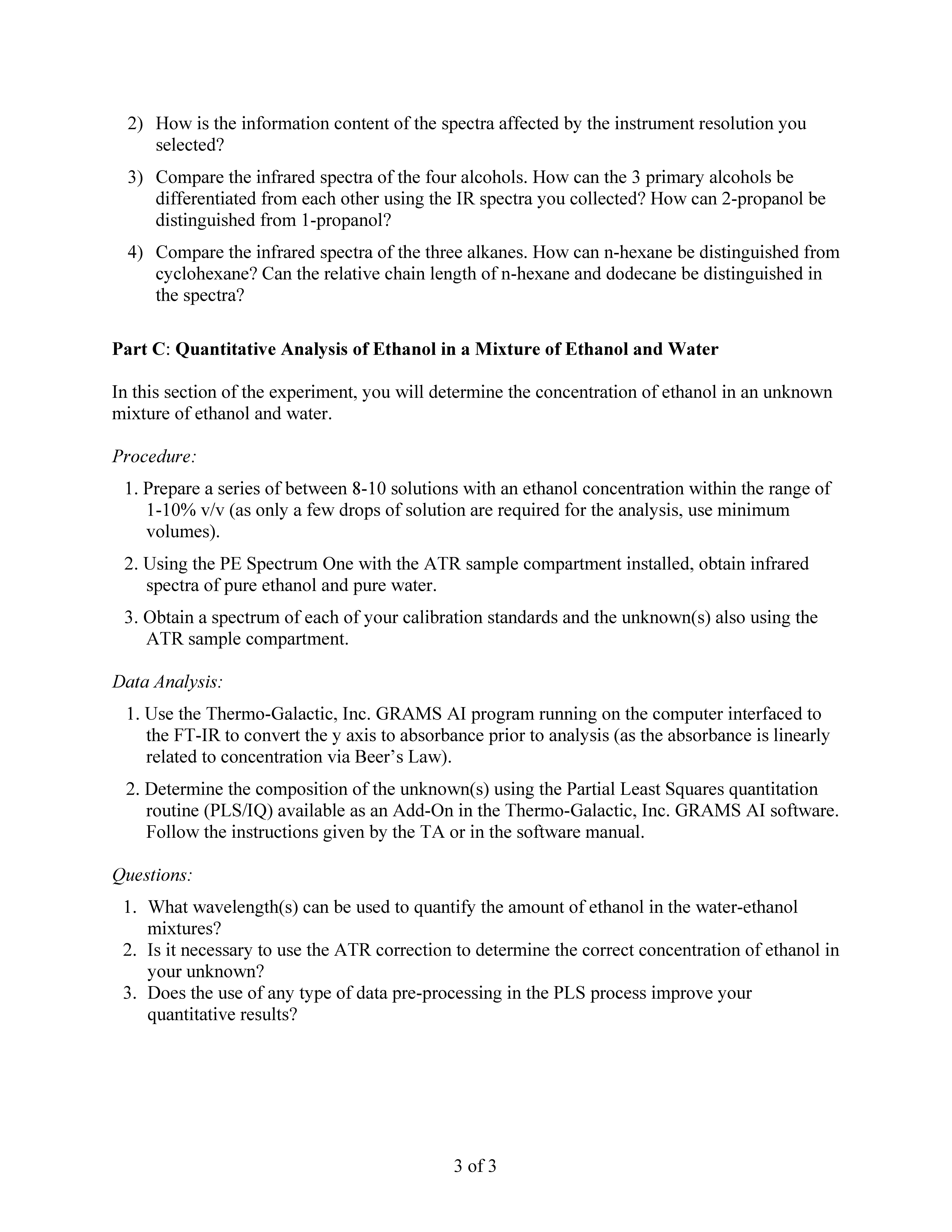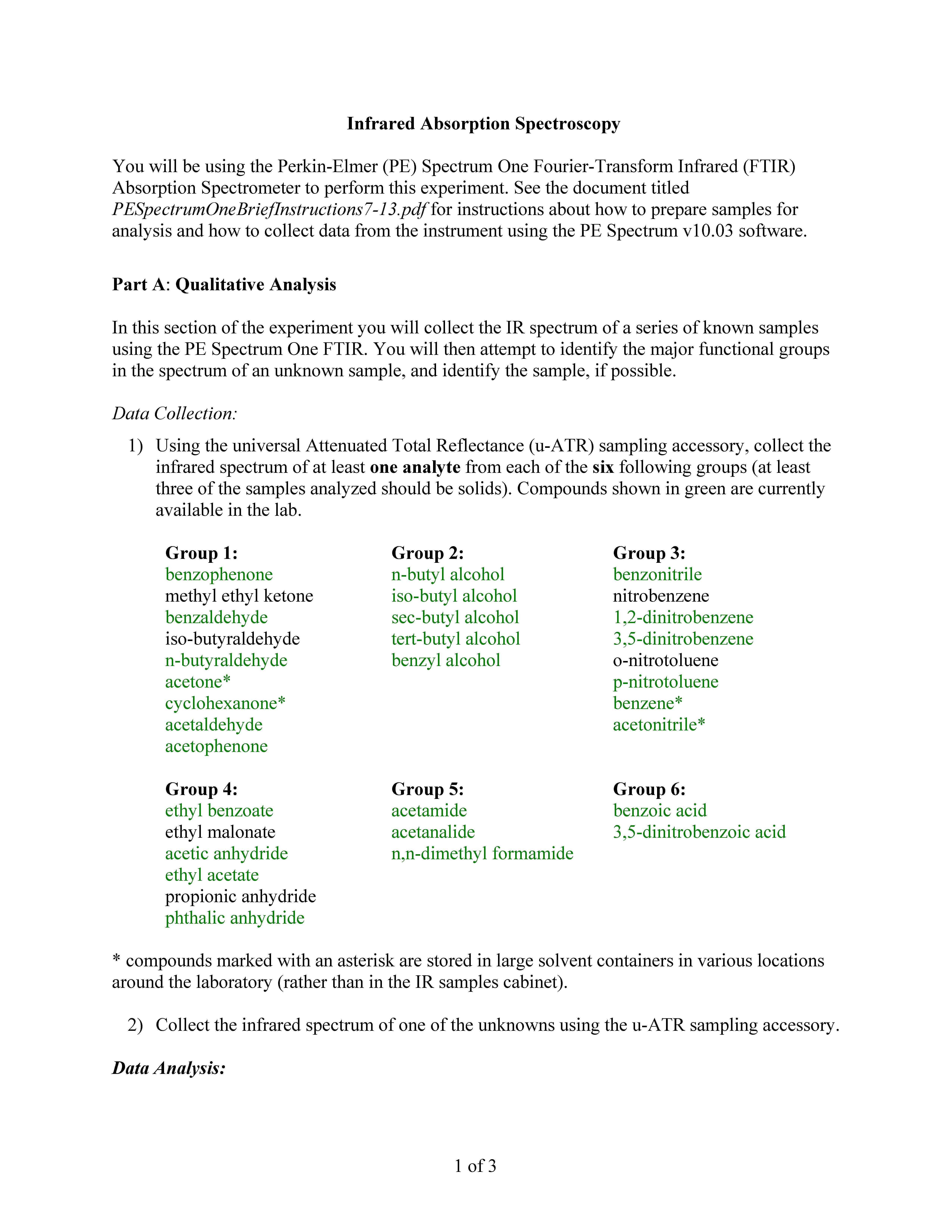 Infrared Absorption Spectroscopy You will be using the Perkin- Elm...