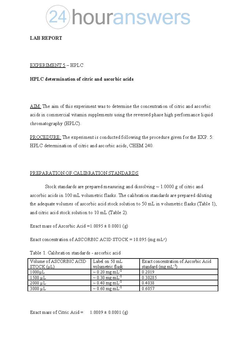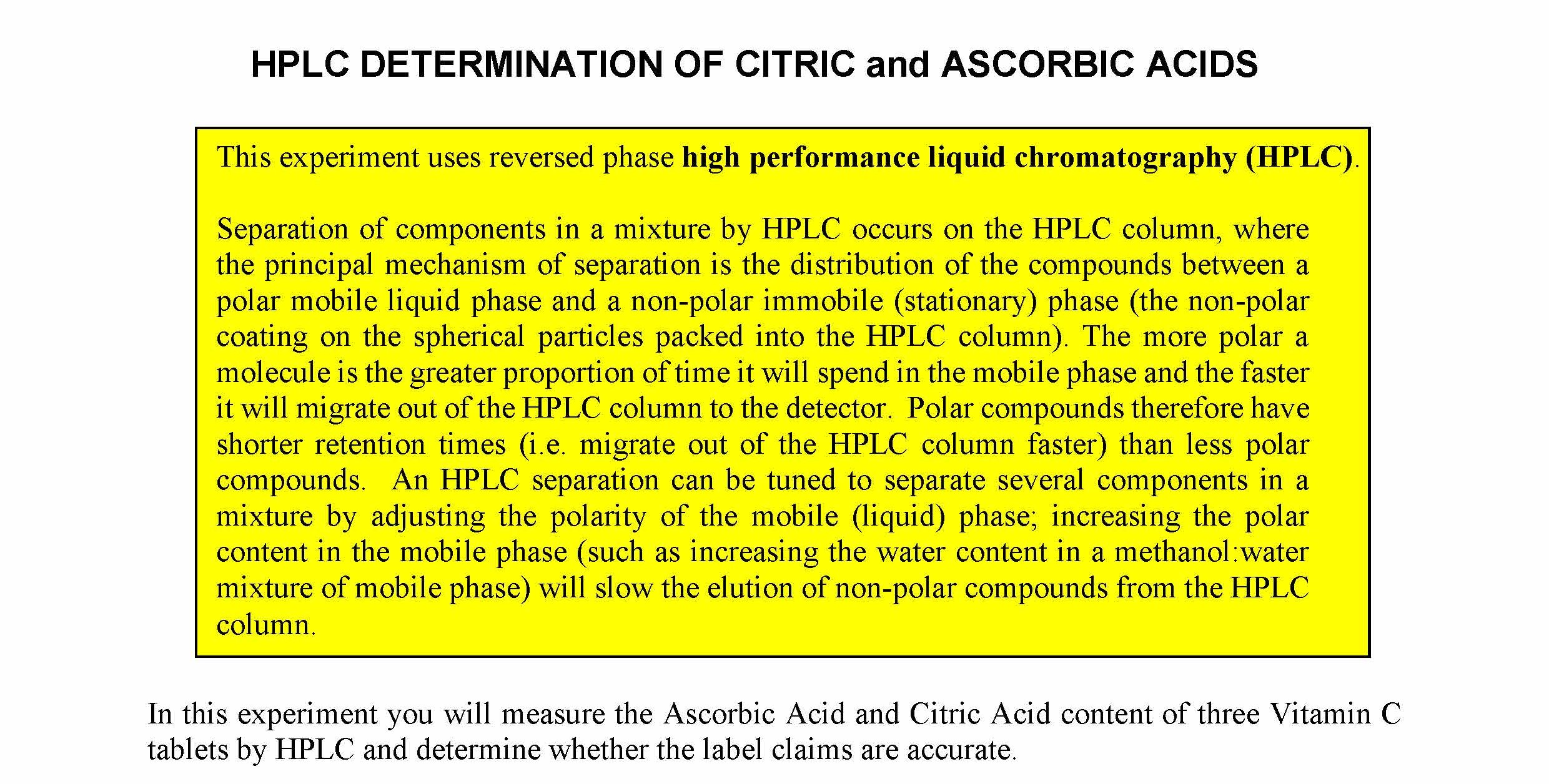 HPLC DETERMINATION OF CITRIC and ASCORBIC ACIDS This experiment u...