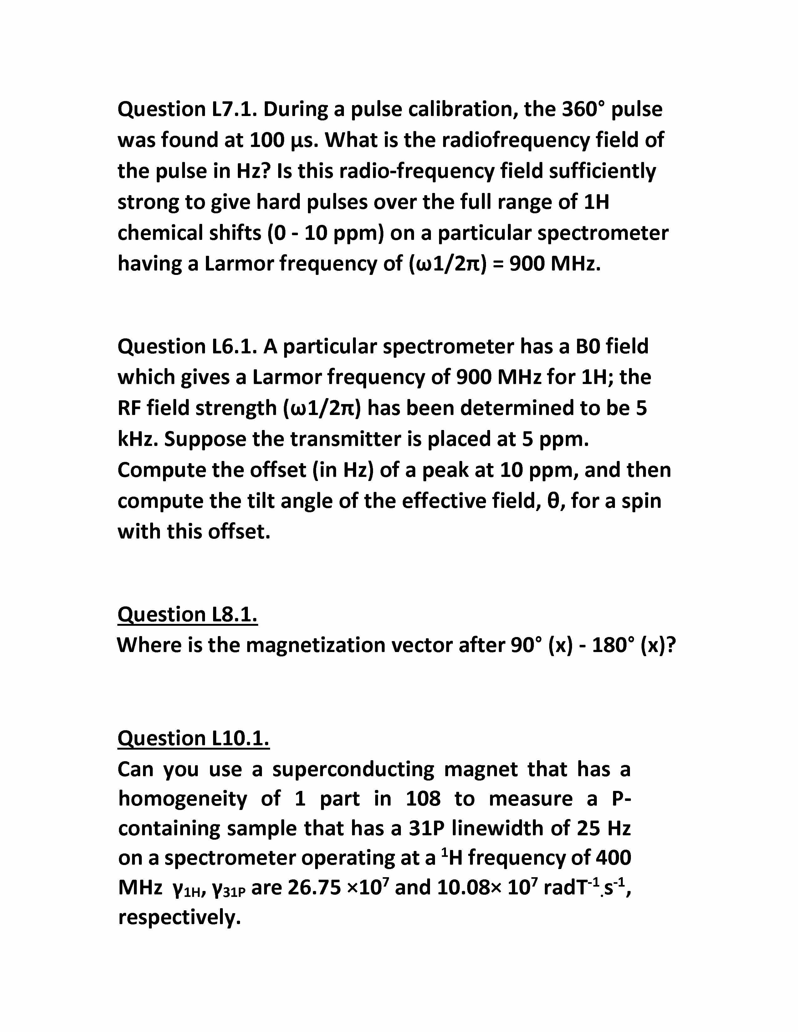 Question L7.1. During a pulse calibration, the 360° pulse was fou...