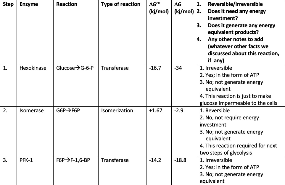 Step Enzyme Reaction and structure Type of AG'o AG 1. Reversi...