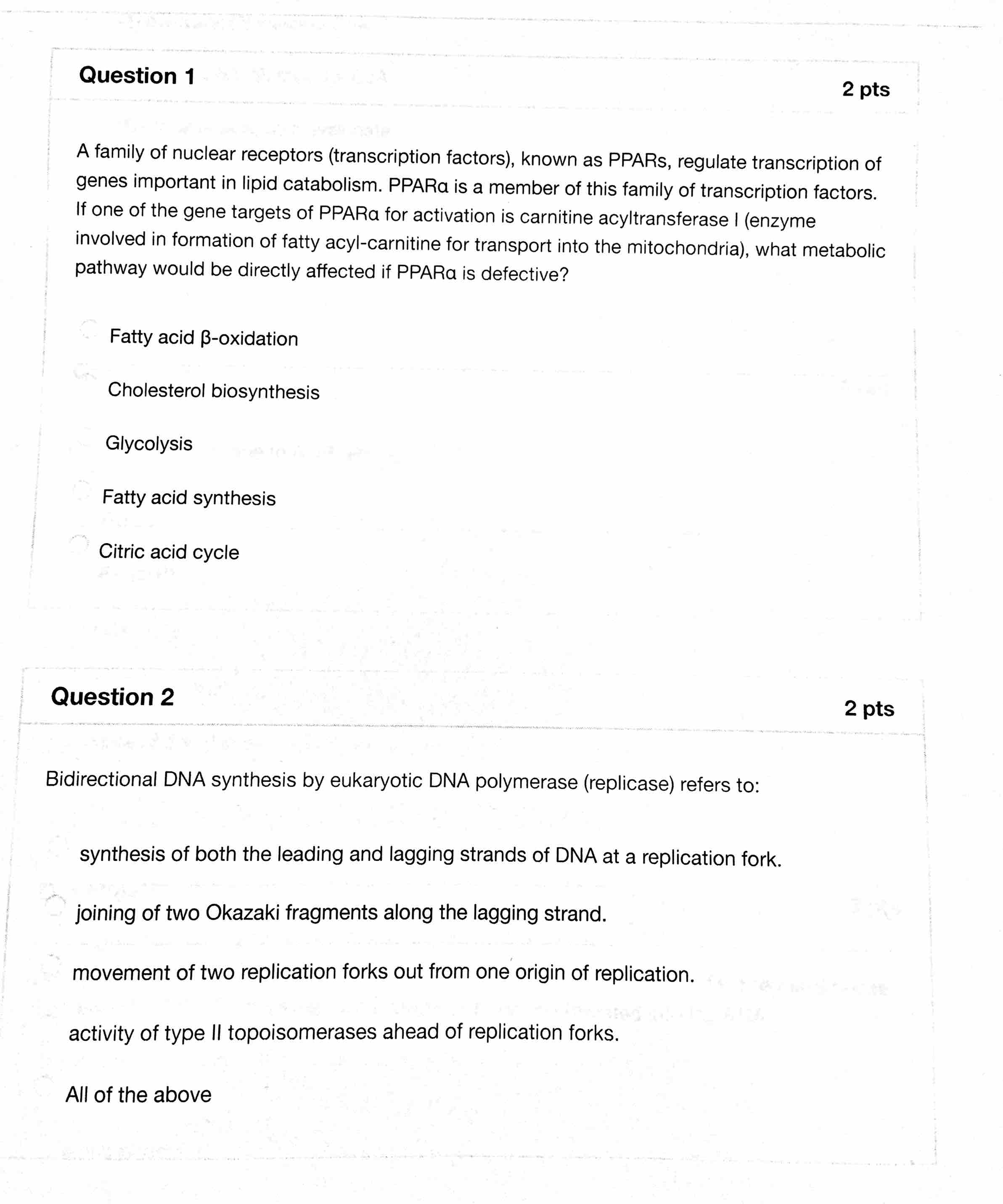 Question 1 2 pts A family of nuclear receptors (transcription fac...