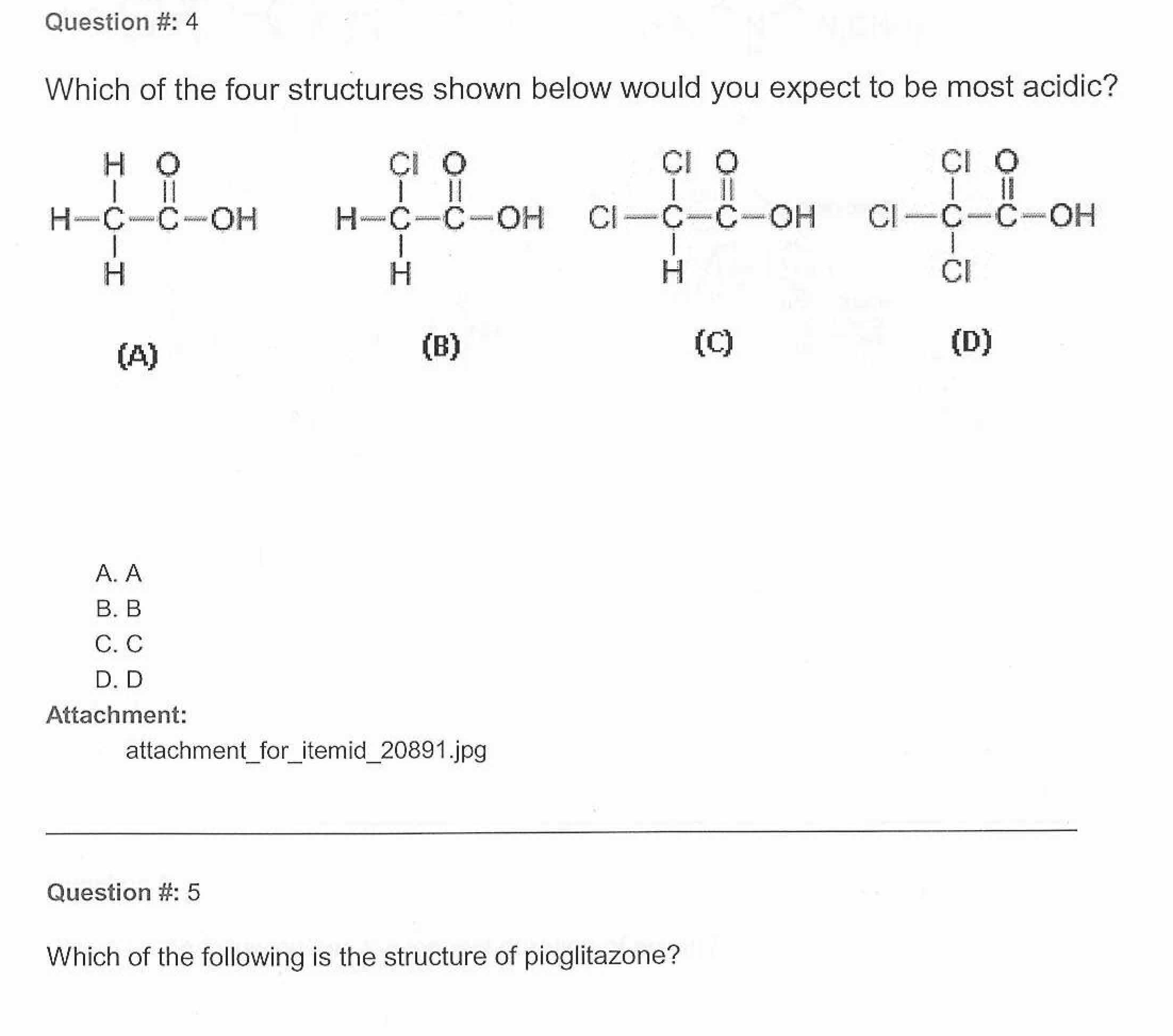 Question #: 4 Which of the four structures shown below would you e...